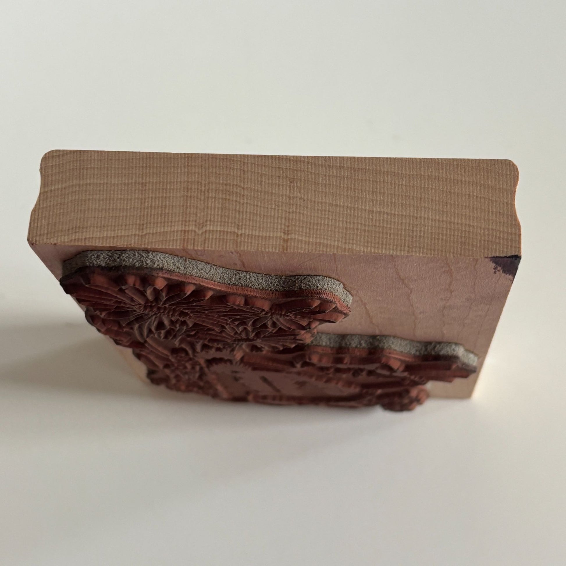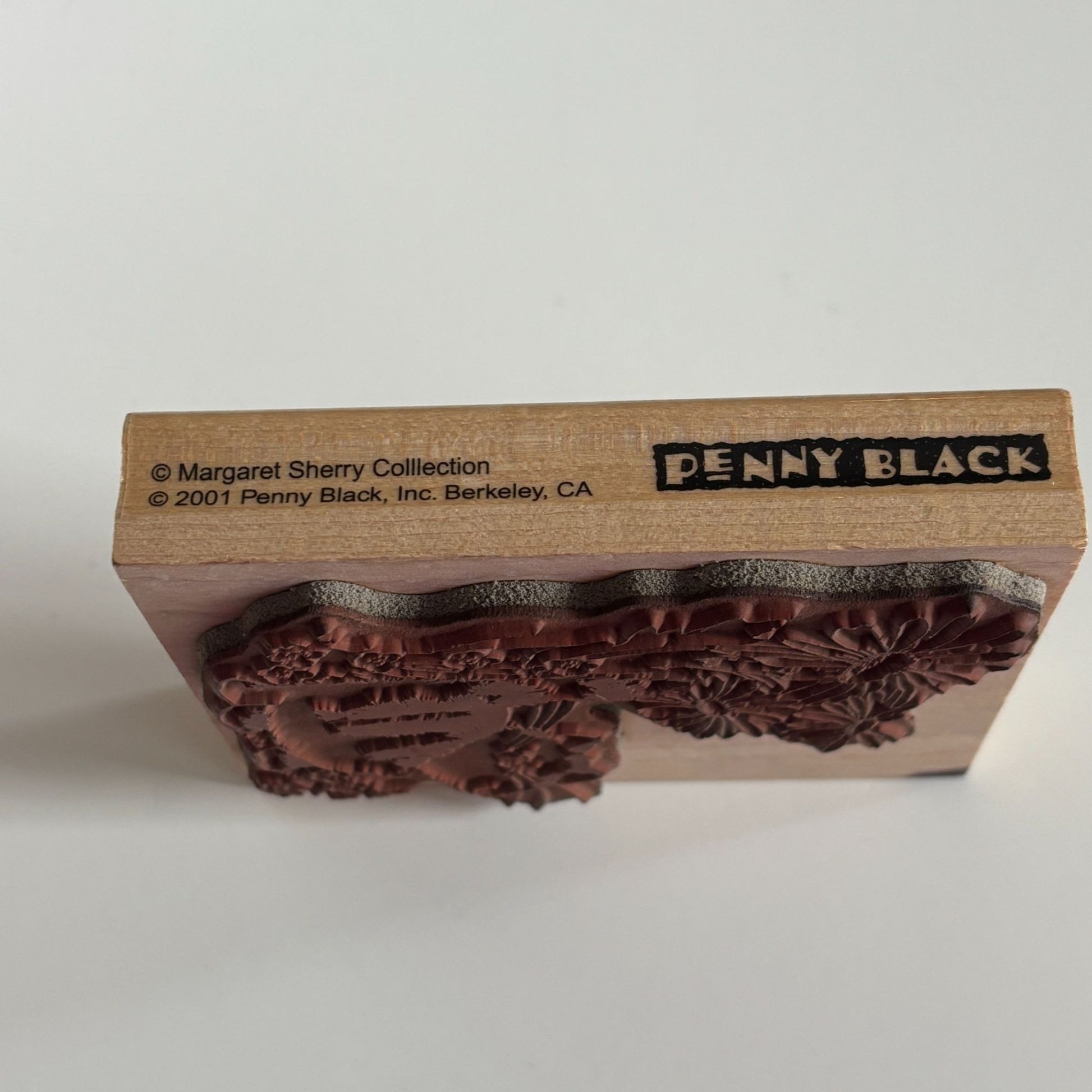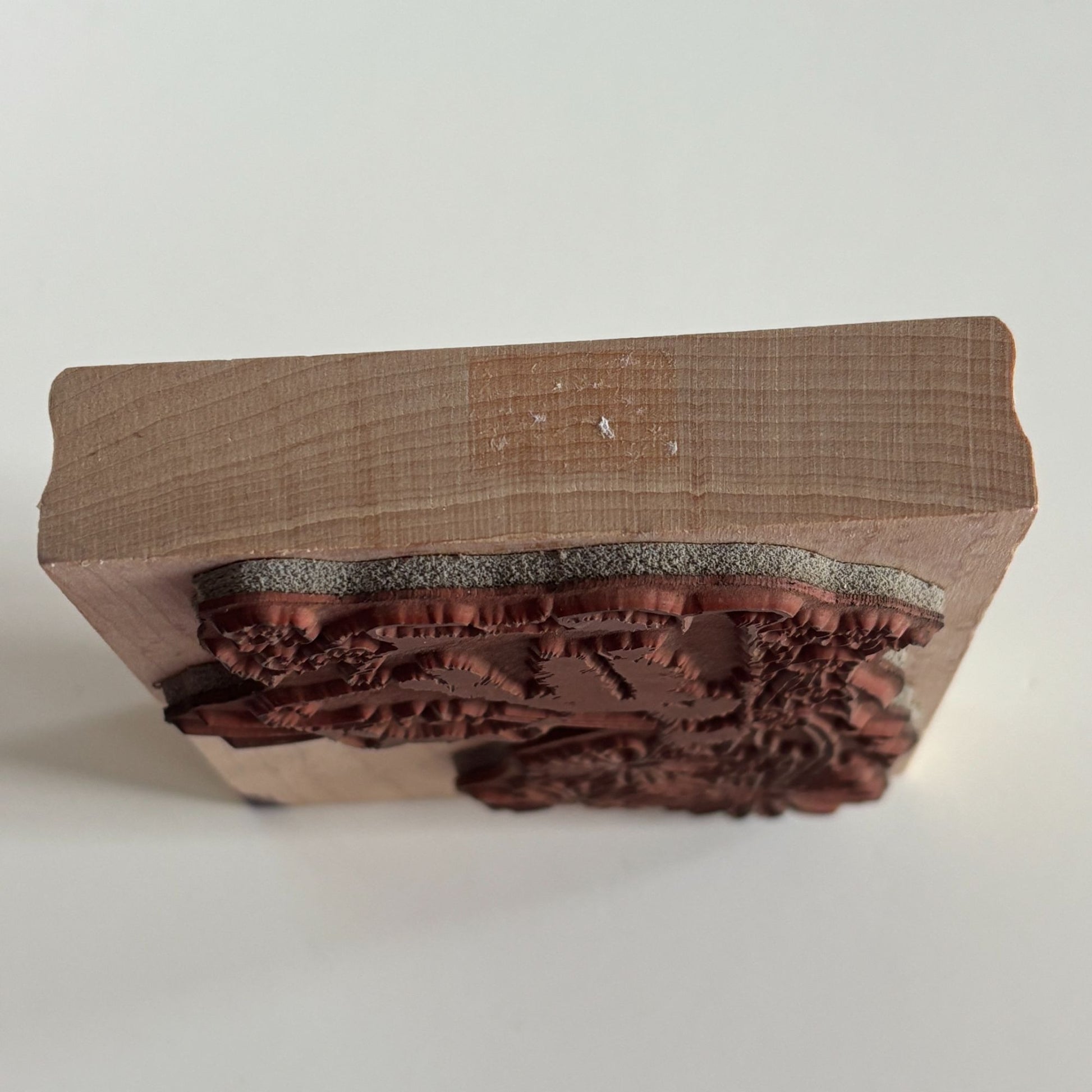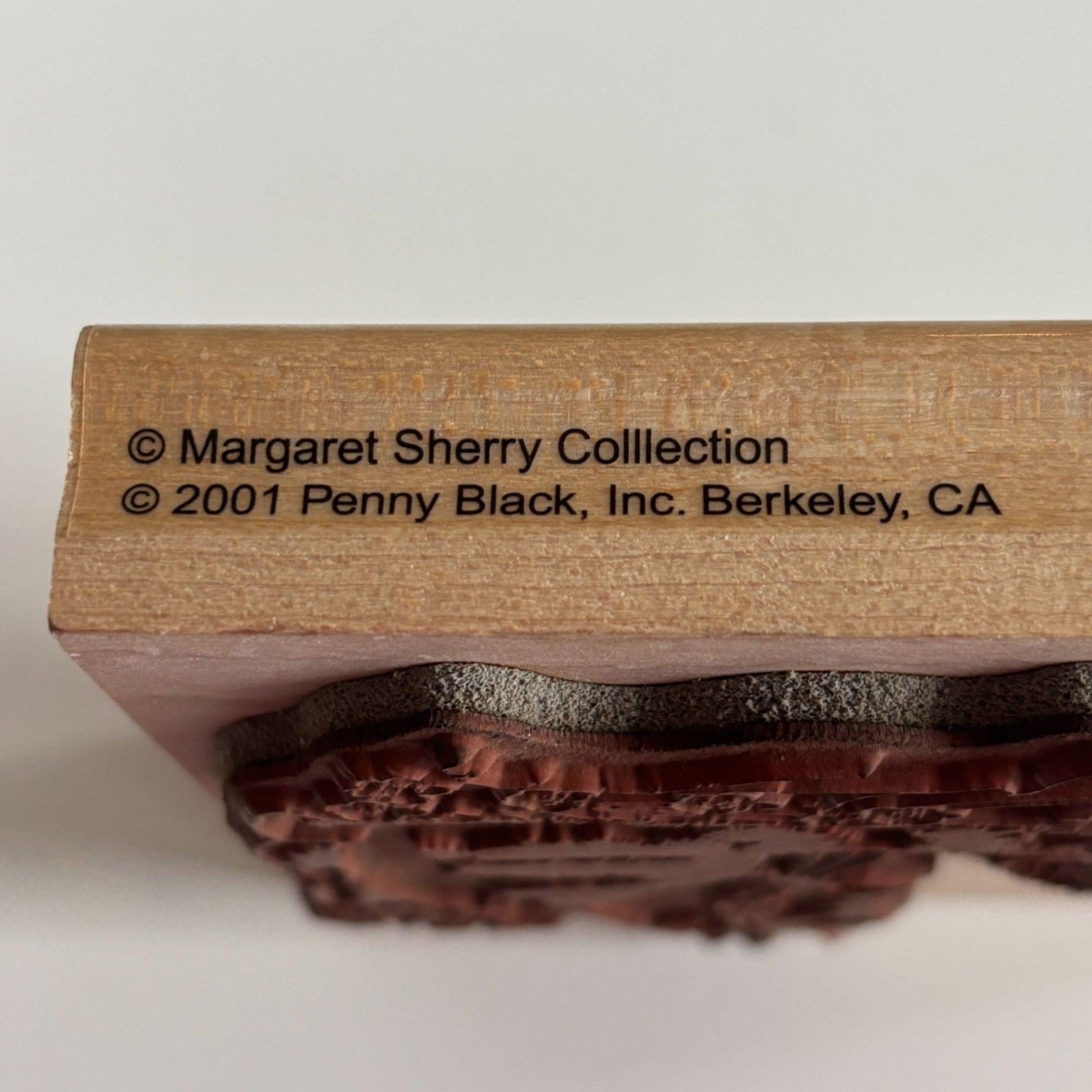 • Gently used with clean rubber and ink stain on wood mount corner