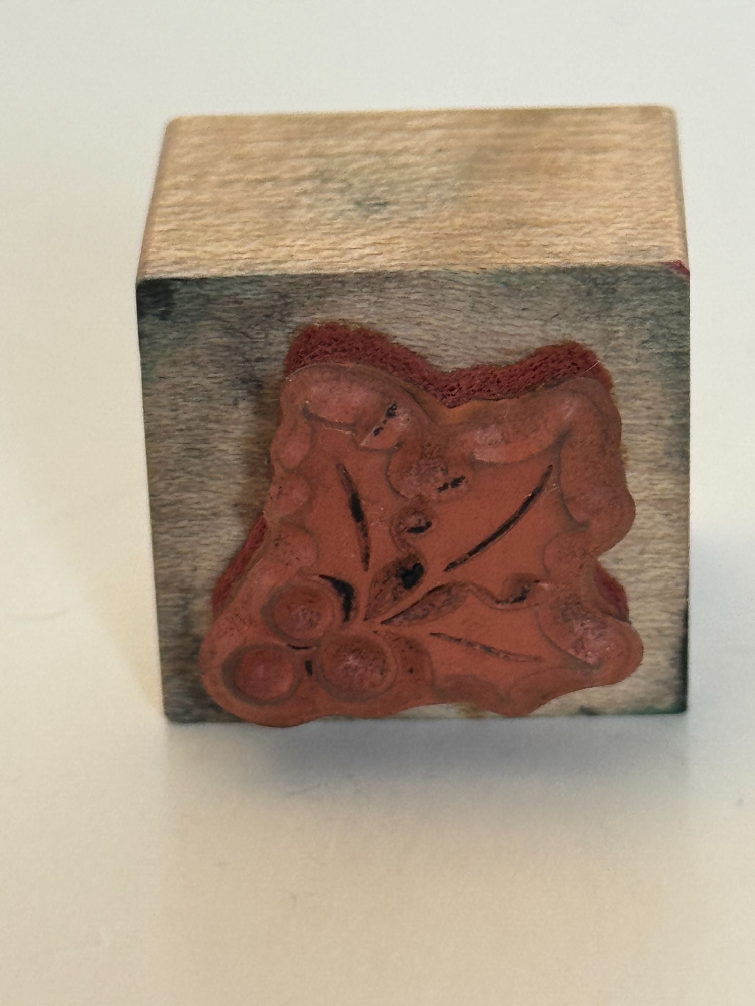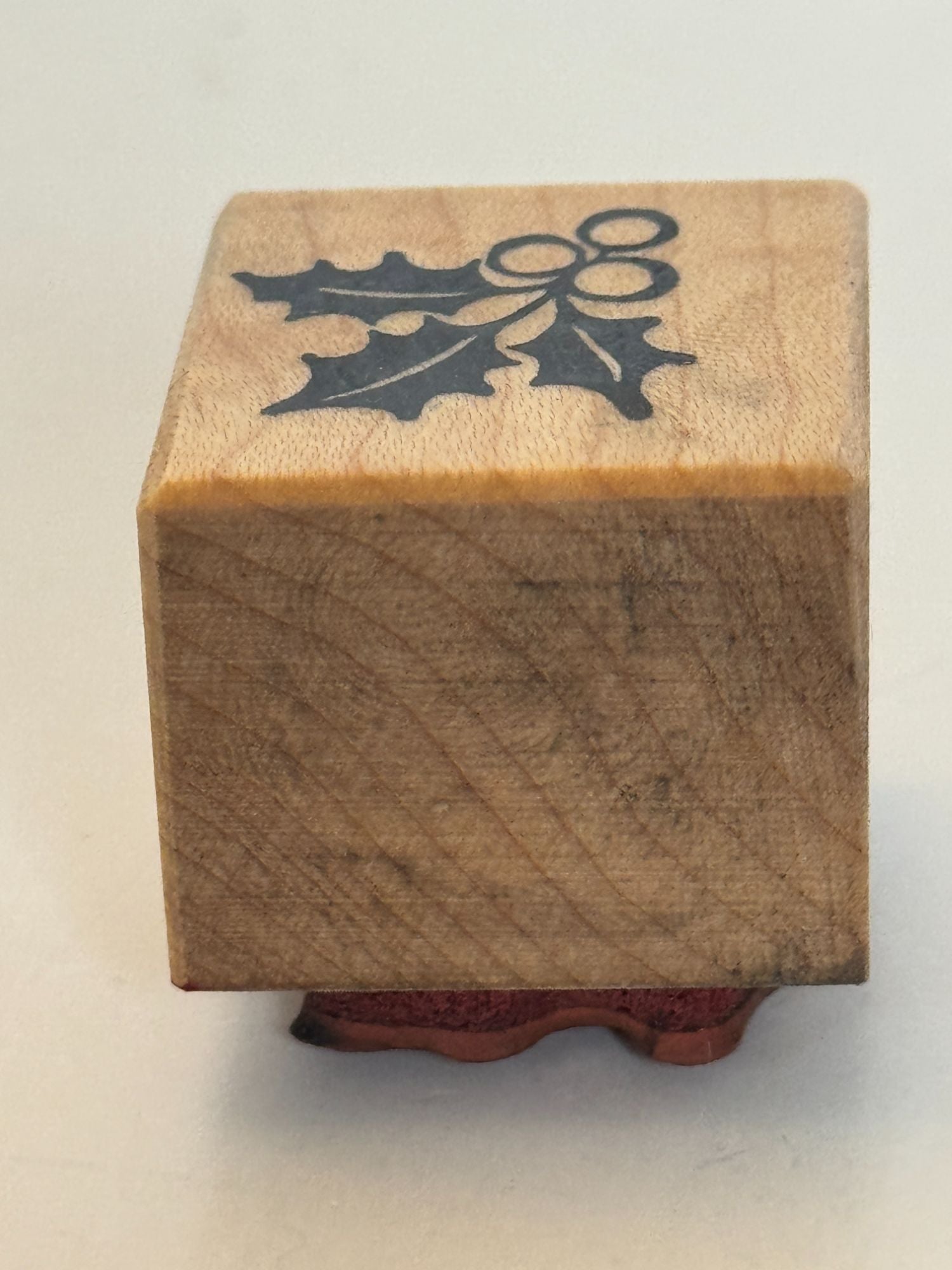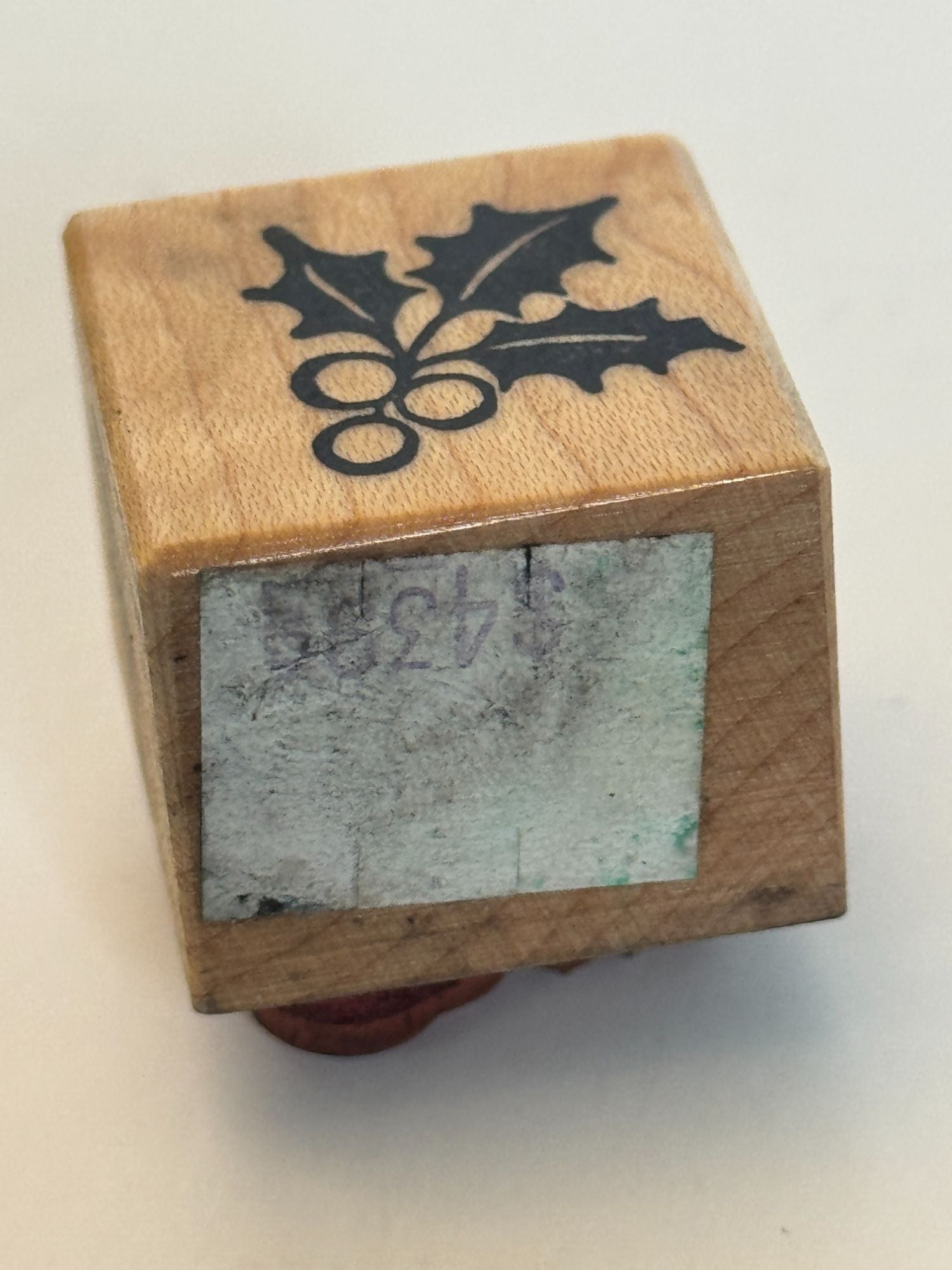This stamp features a classic holly leaves and berries design, offers a charming way to enhance seasonal craft projects.