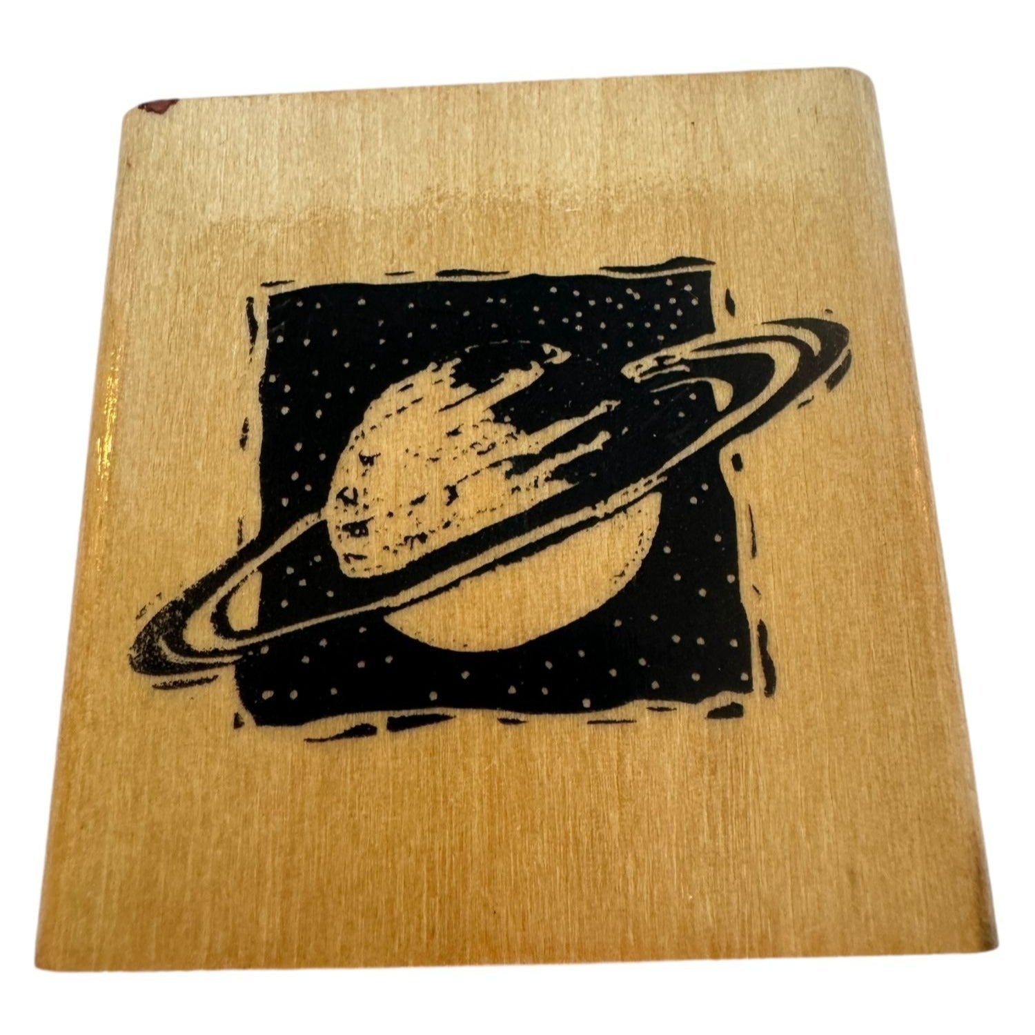 This rubber stamp features a detailed Saturn design, perfect for adding a celestial touch to your crafts.
