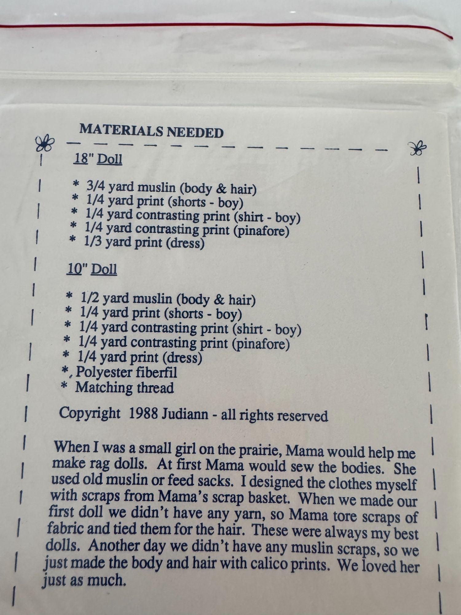 Sew Special Sewing Pattern Rag Doll Memories Folk Scraps Country 1980s Vintage