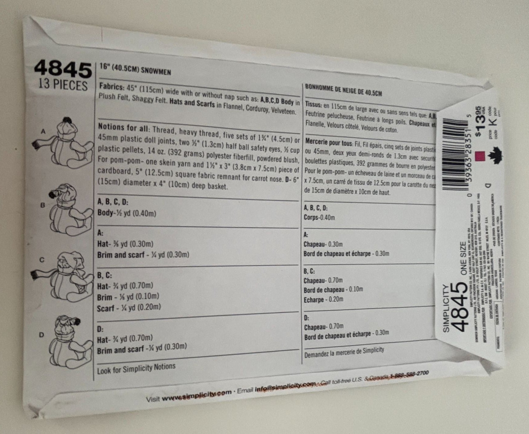 Simplicity Crafts Sewing Pattern 4845: Snowmen