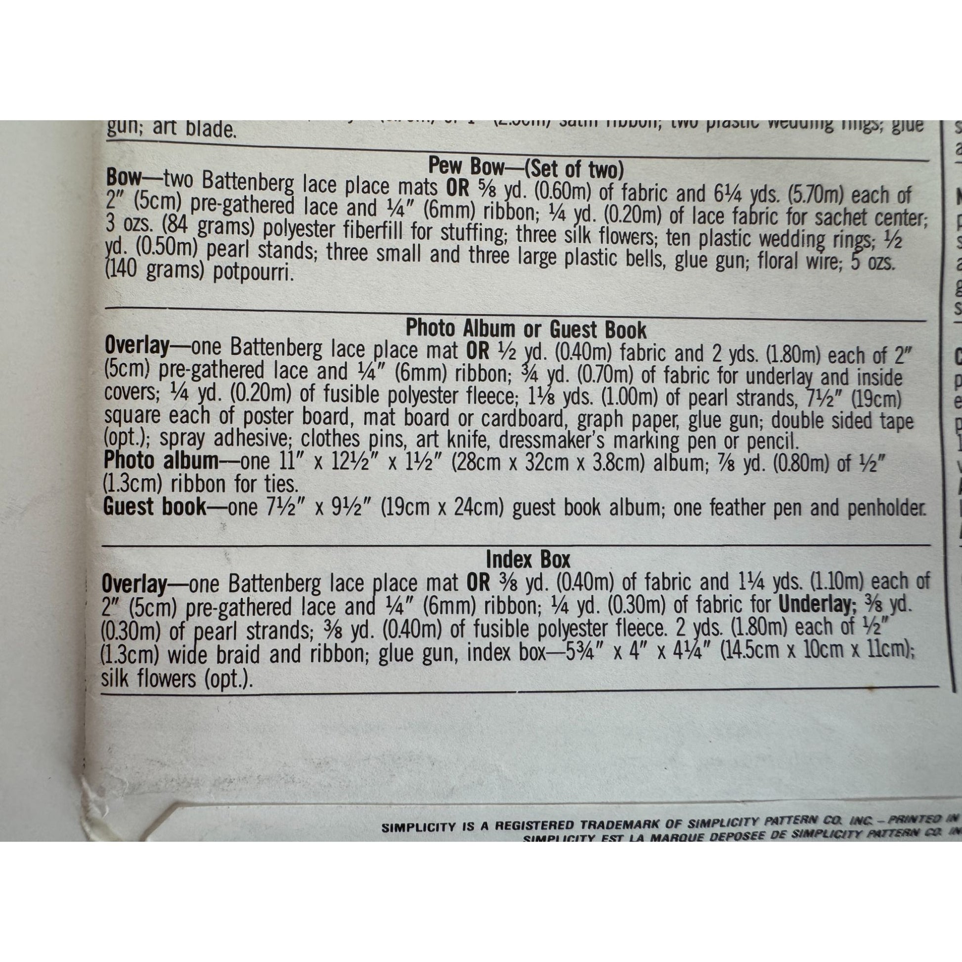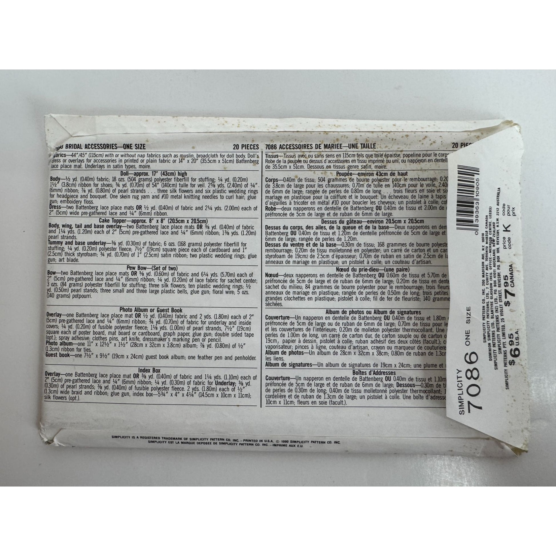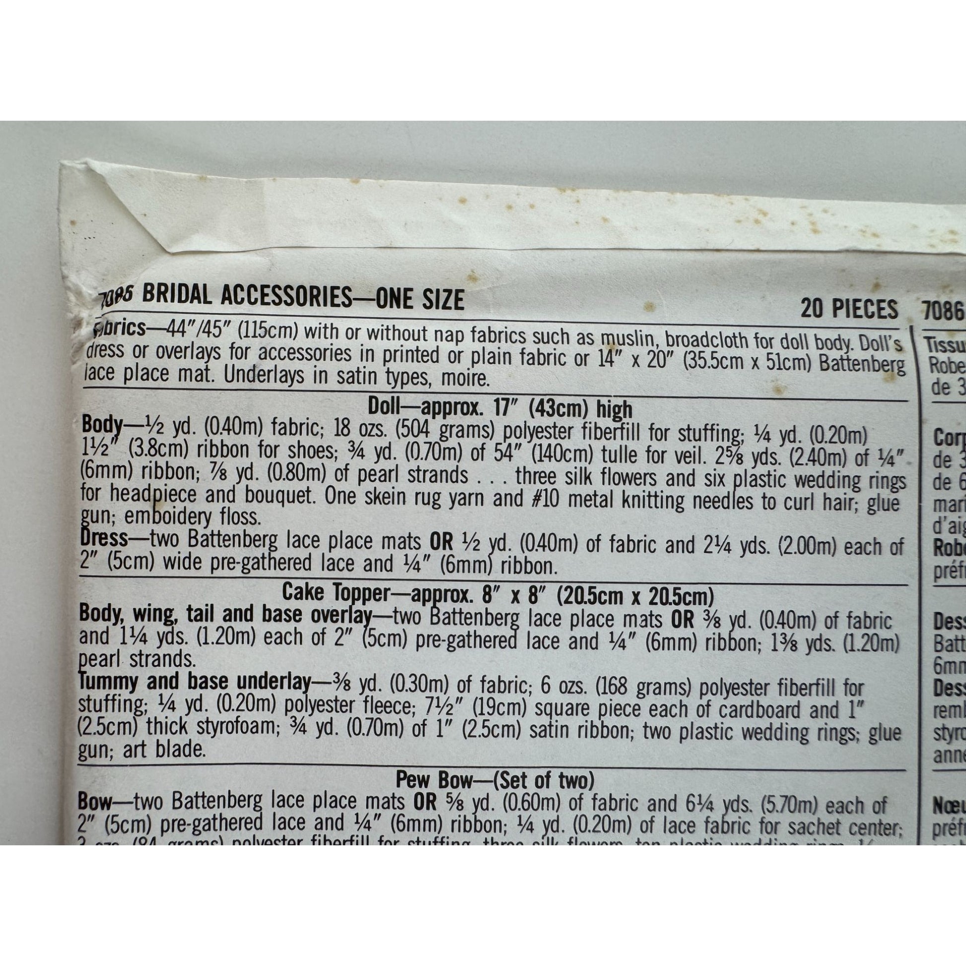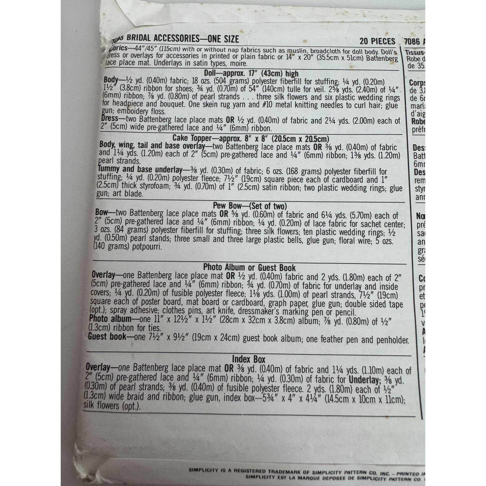 Simplicity Crafts Sewing Pattern 7086 Wedding Bridal Accessories Cake Topper UC