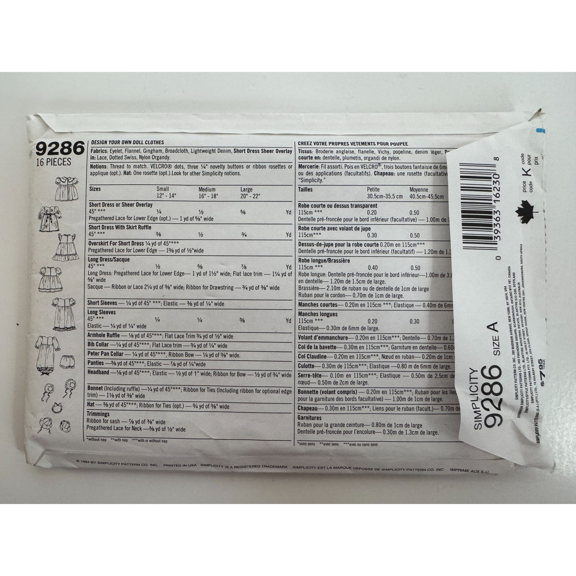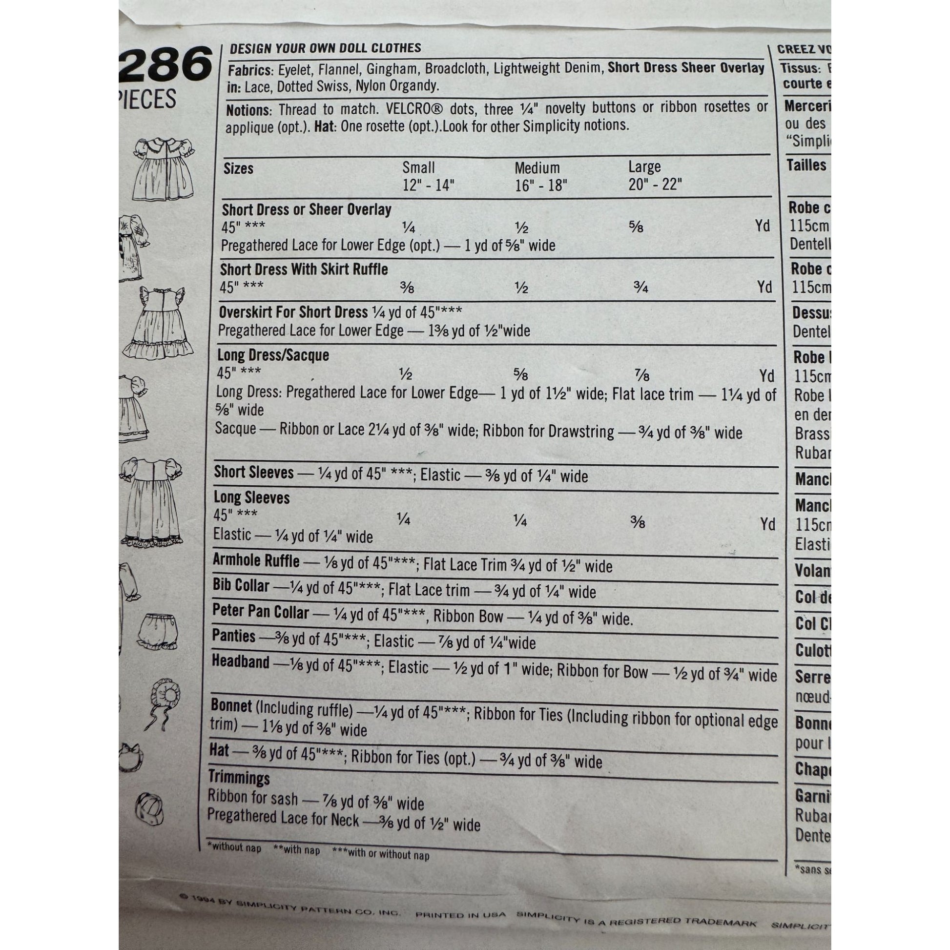 Simplicity Sewing Pattern 9286: Doll Clothes