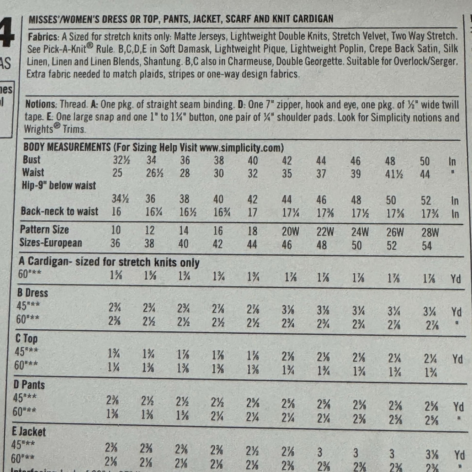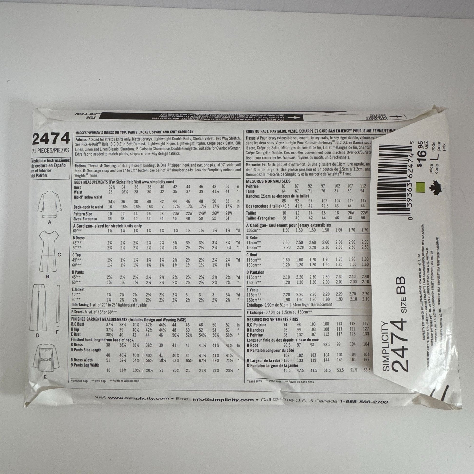 Simplicity Sewing Pattern 2474: Misses' Dress or Top, Pants, Jacket, Scarf and Knit Cardigan