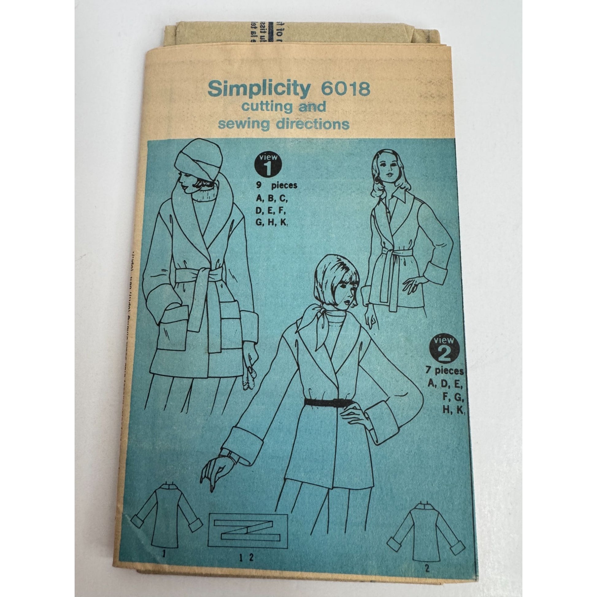 Simplicity Sewing Pattern 6018 Jacket Belted Waist Shawl Collar Patch Pockets 14