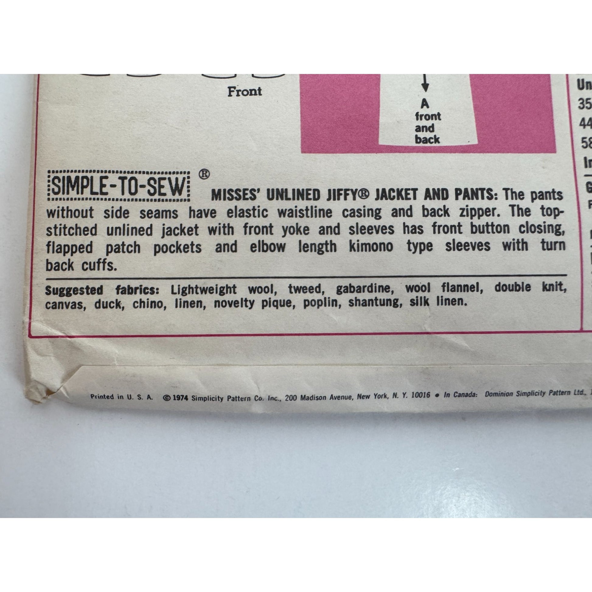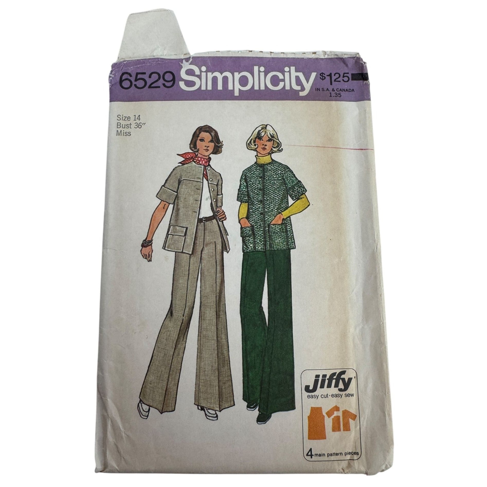 Simplicity Sewing Pattern 6529 Unlined Jiffy Jacket Pants Vintage 1970s UC 14