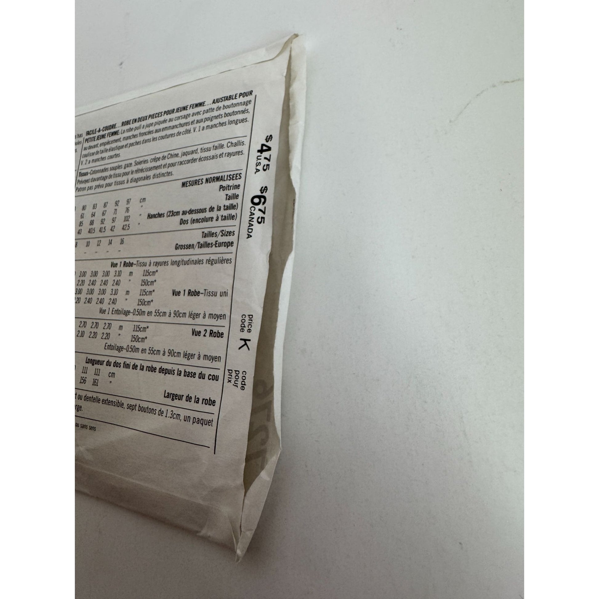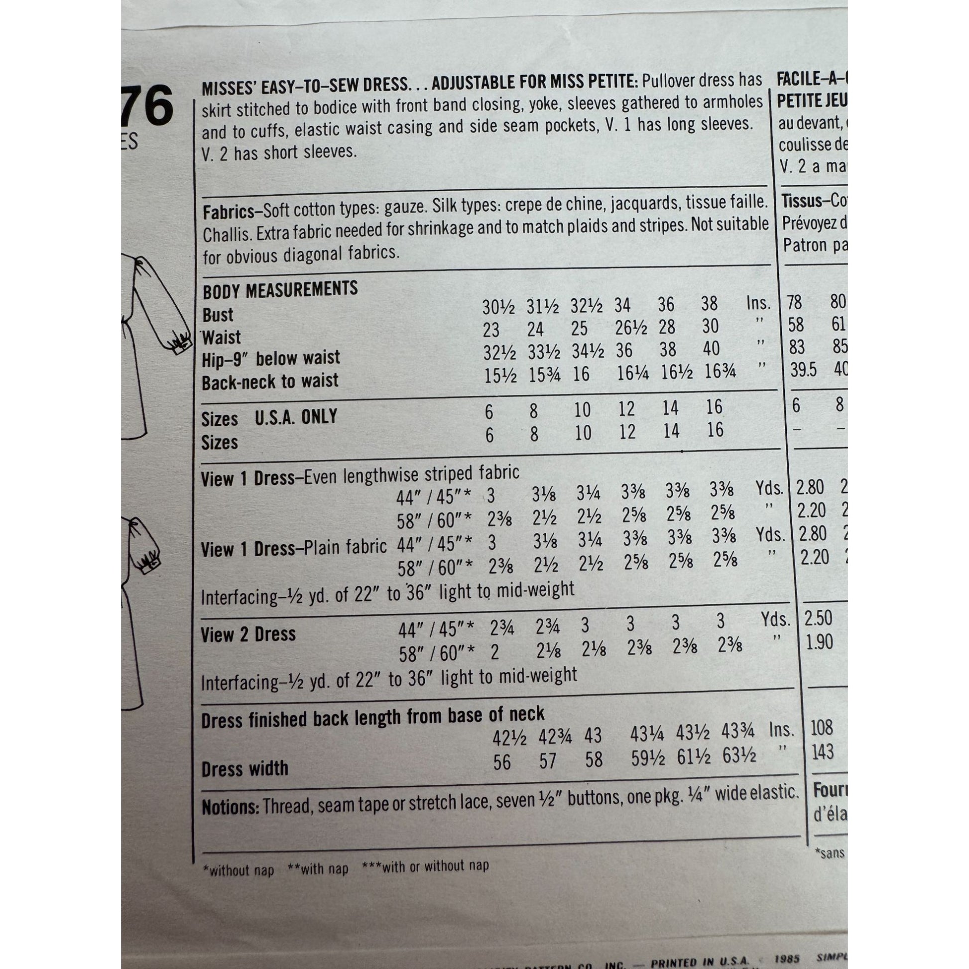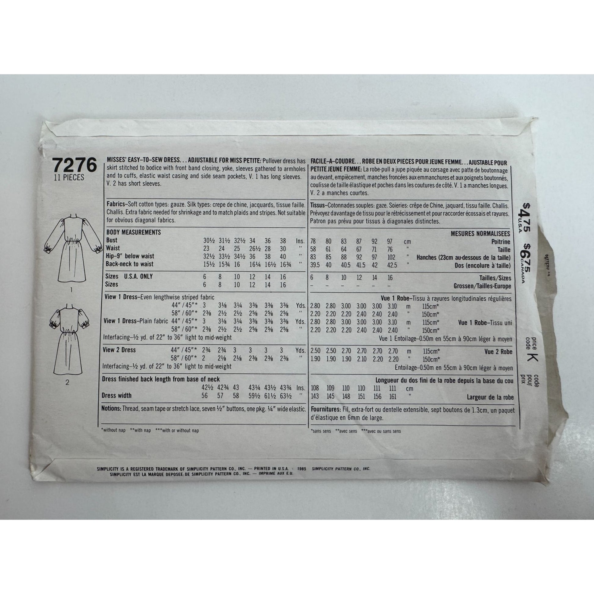 Simplicity Sewing Pattern 7276 Dress Balloon Sleeves 12 14 16 1980s Style Uncut