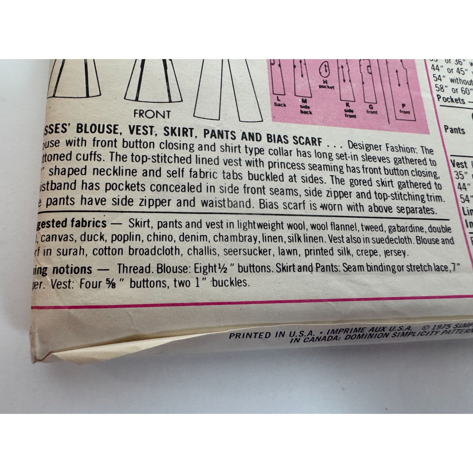 Simplicity Sewing Pattern 7296 Blouse Vest Skirt Pants Bias Scarf 1970s UC 12