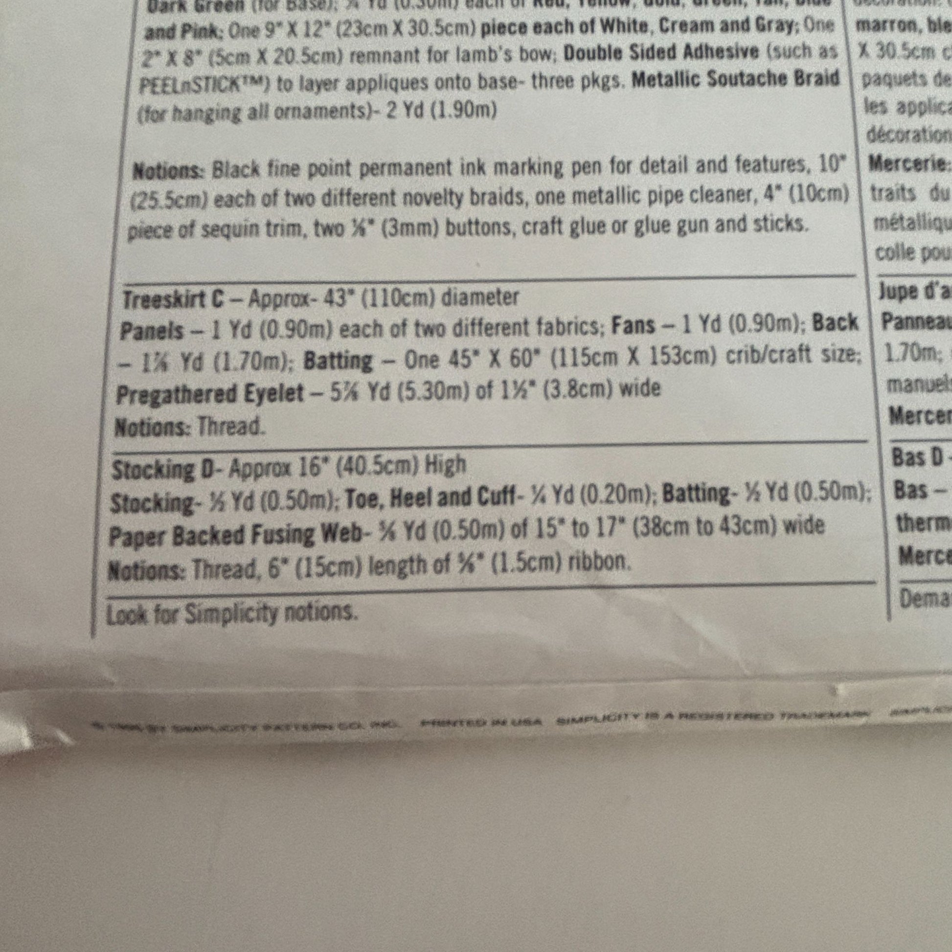 Simplicity Sewing Pattern 7421 Holiday Ornament Christmas Tree Skirt Stocking UC