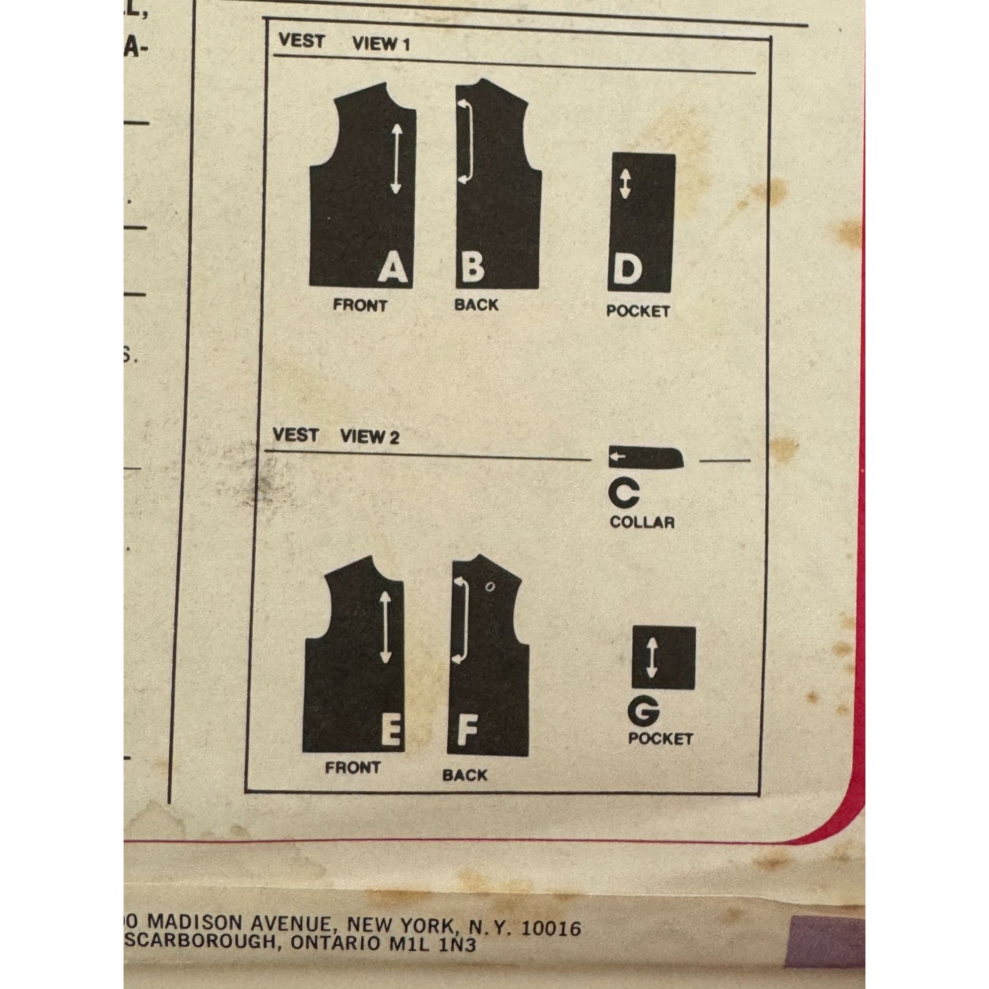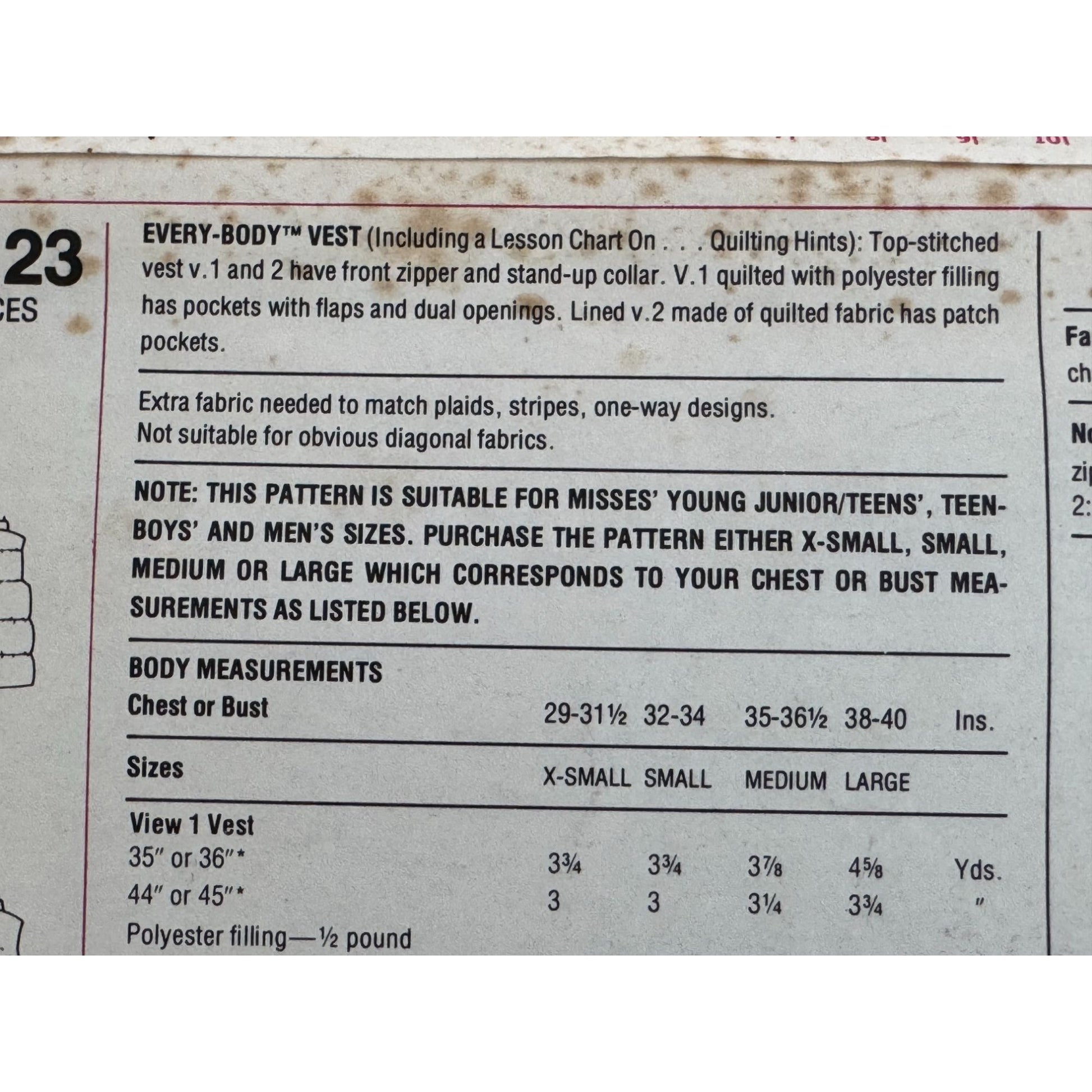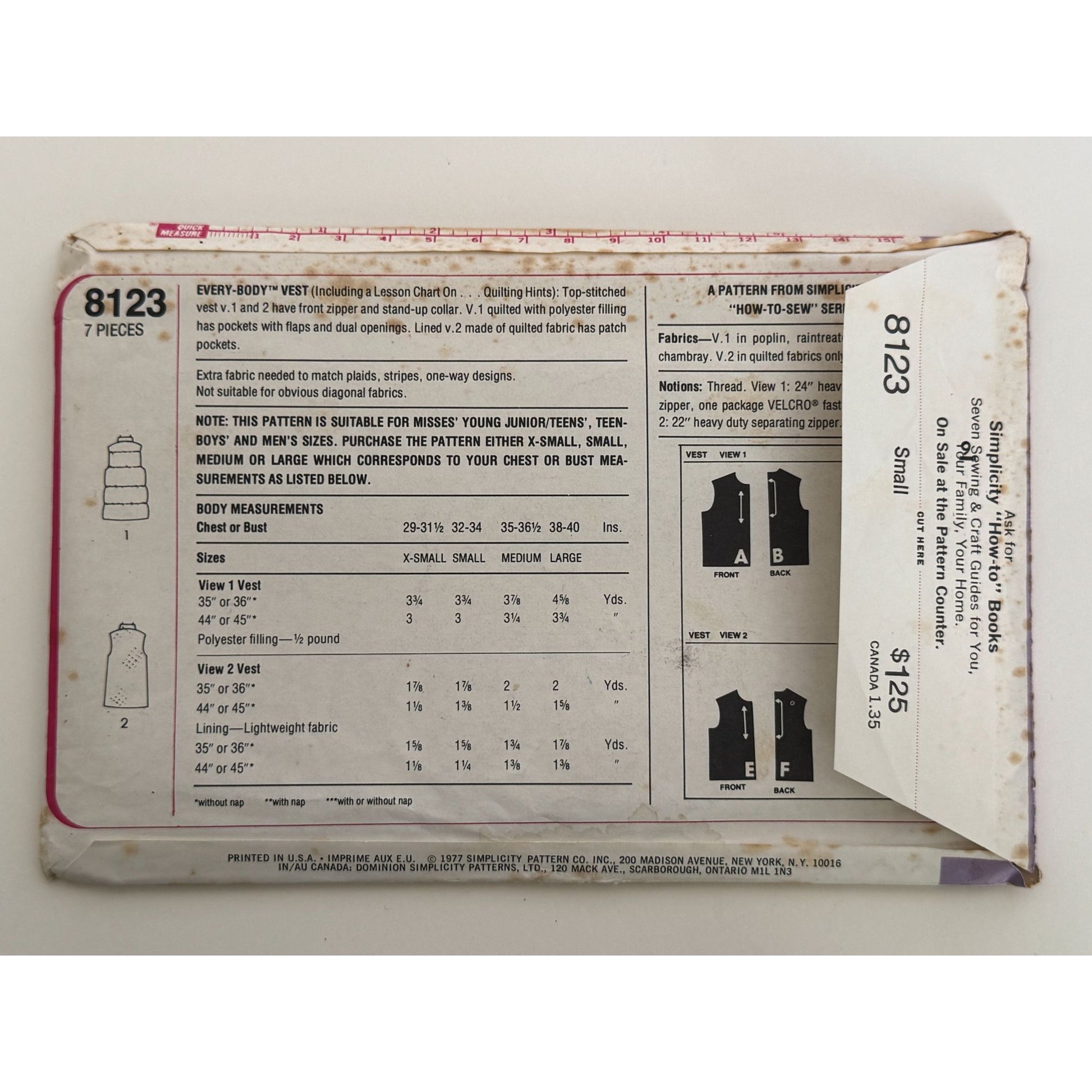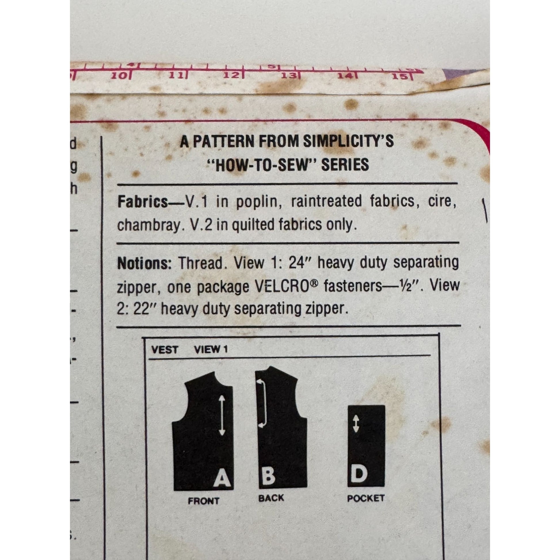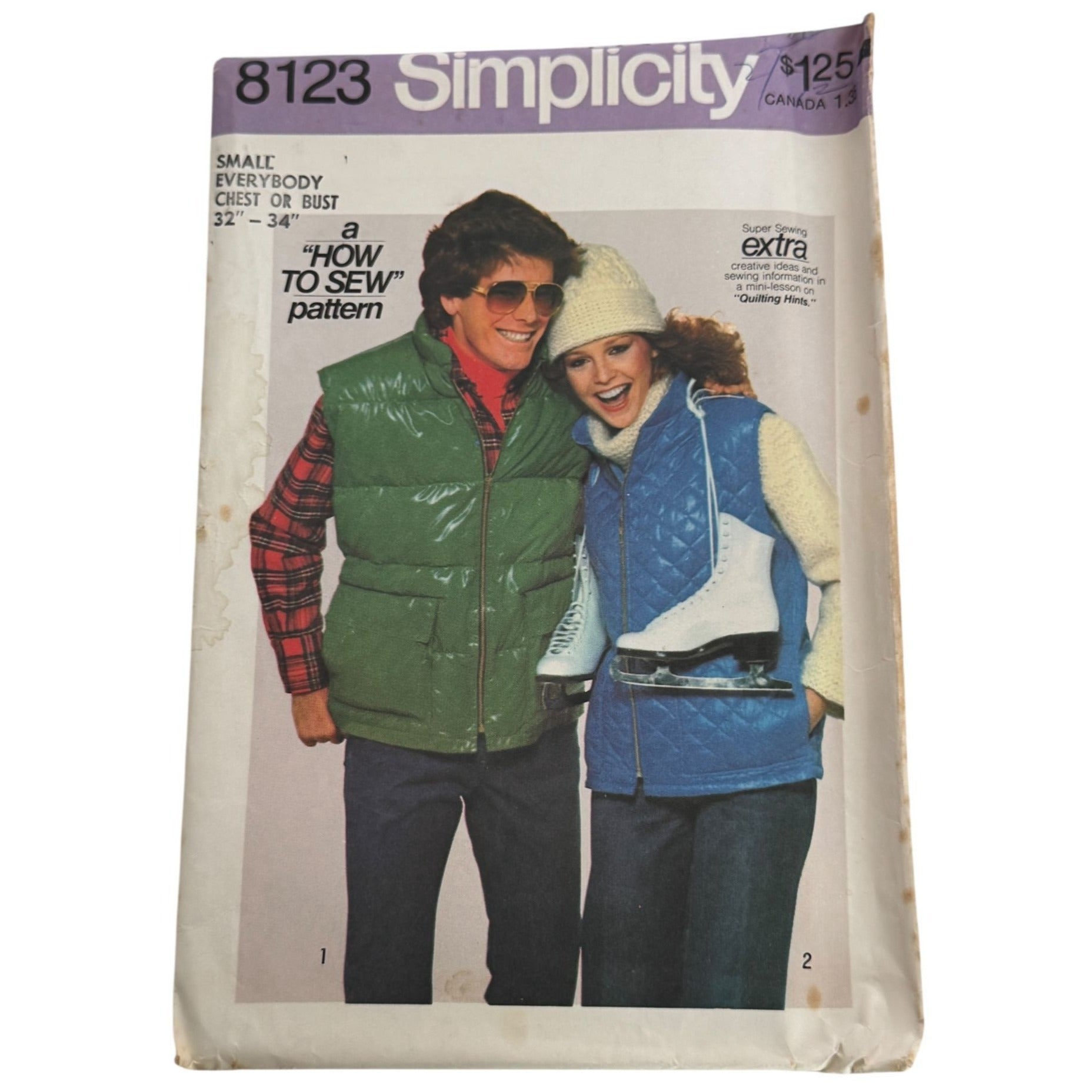 Simplicity Sewing Pattern 8123 Quilted Vests 1970s Outerwear Small Uncut Unisex