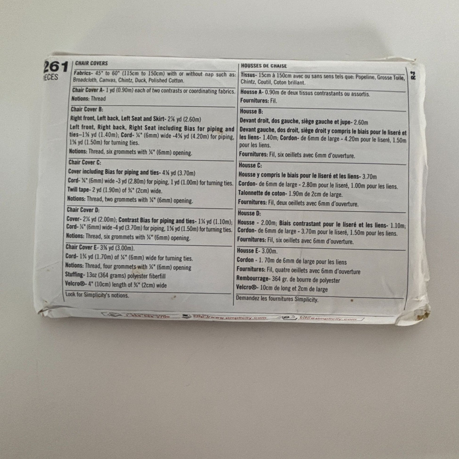 Simplicity Sewing Pattern 8261: Chair Covers