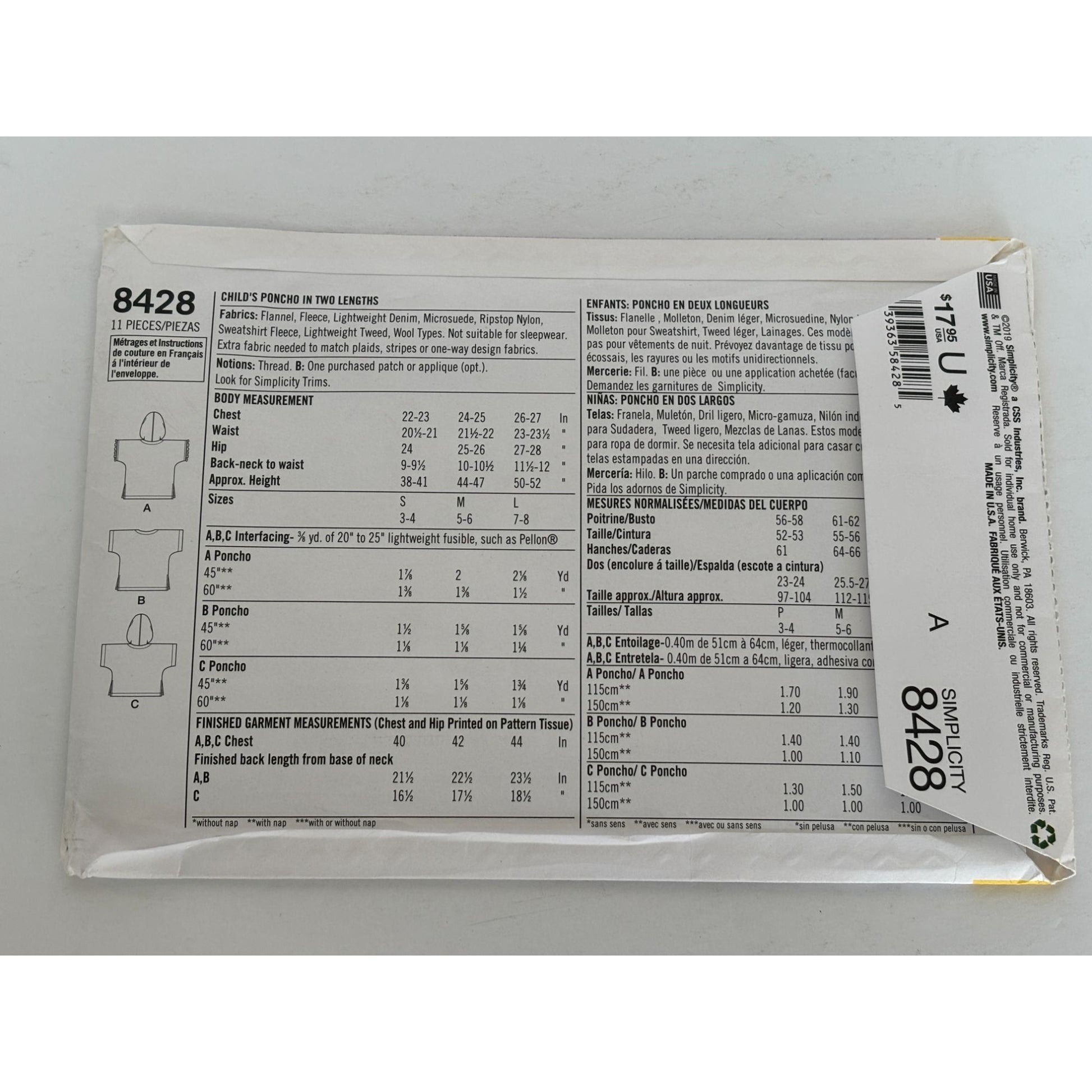 Simplicity Sewing Pattern 8428: Child's Poncho