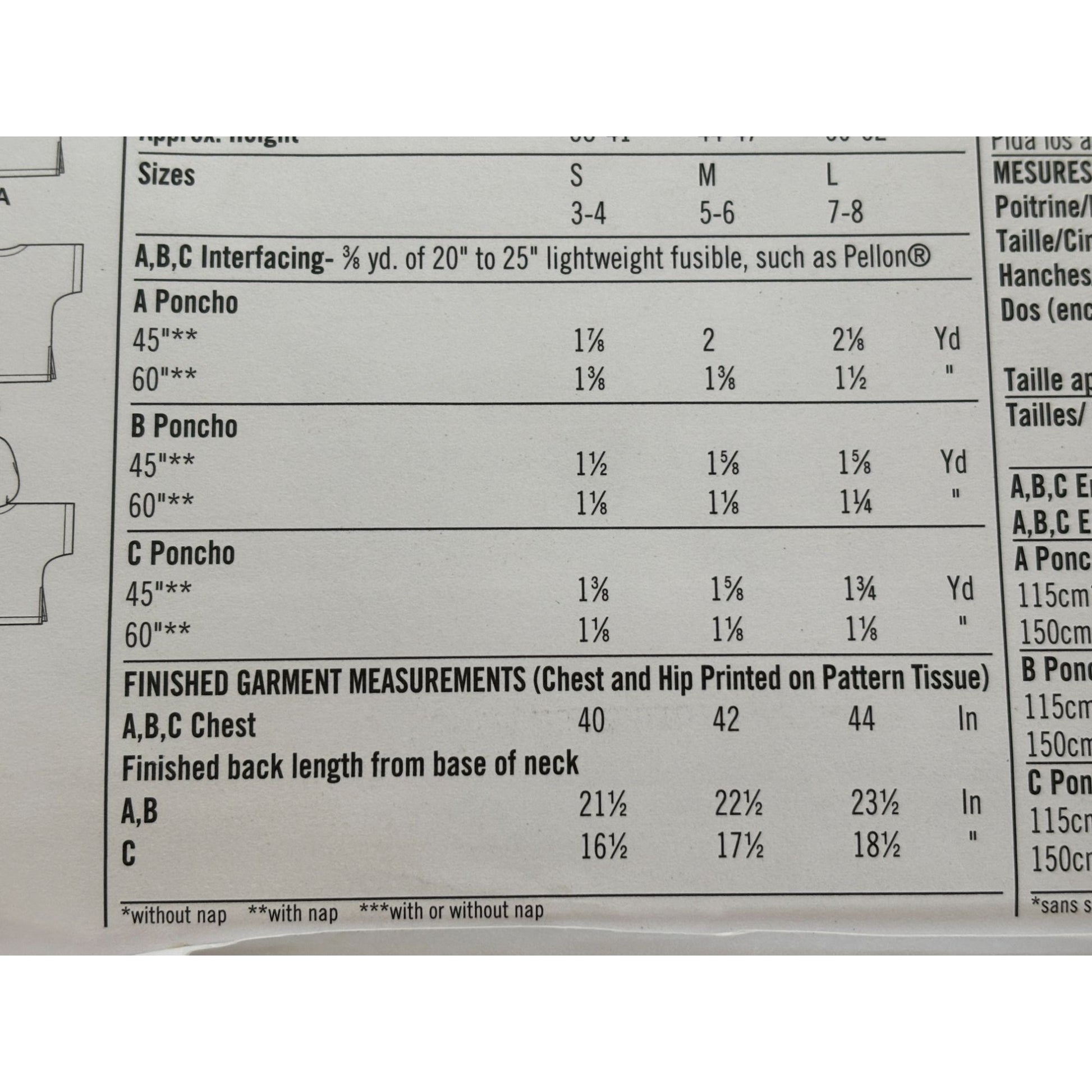 This Simplicity pattern provides instructions for creating a charming children's poncho in three styles. Ideal for sewing enthusiasts, the design features simple construction and easy-to-follow steps. The pattern includes sizes small to large, accommodating growth and offering versatility in fabric choices.