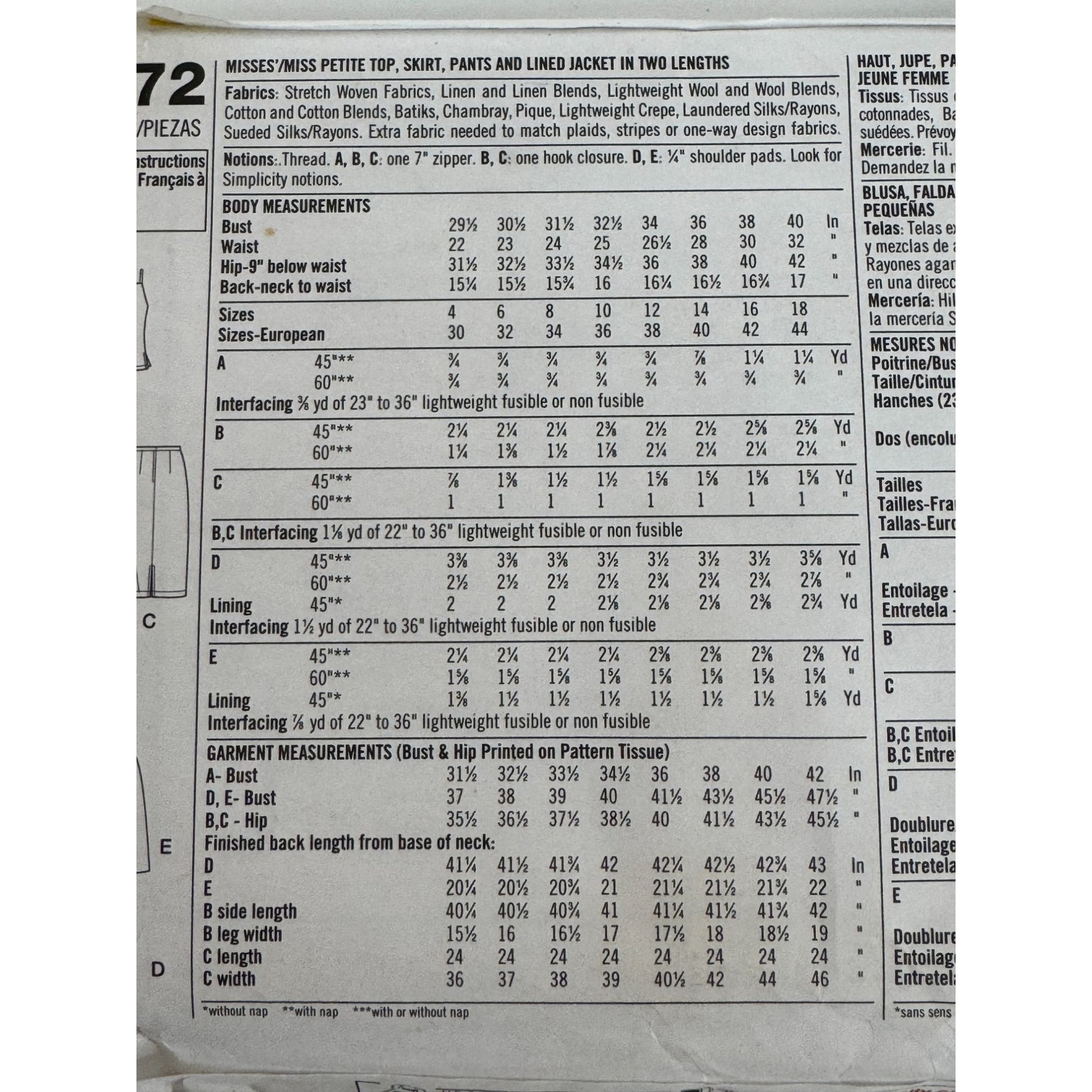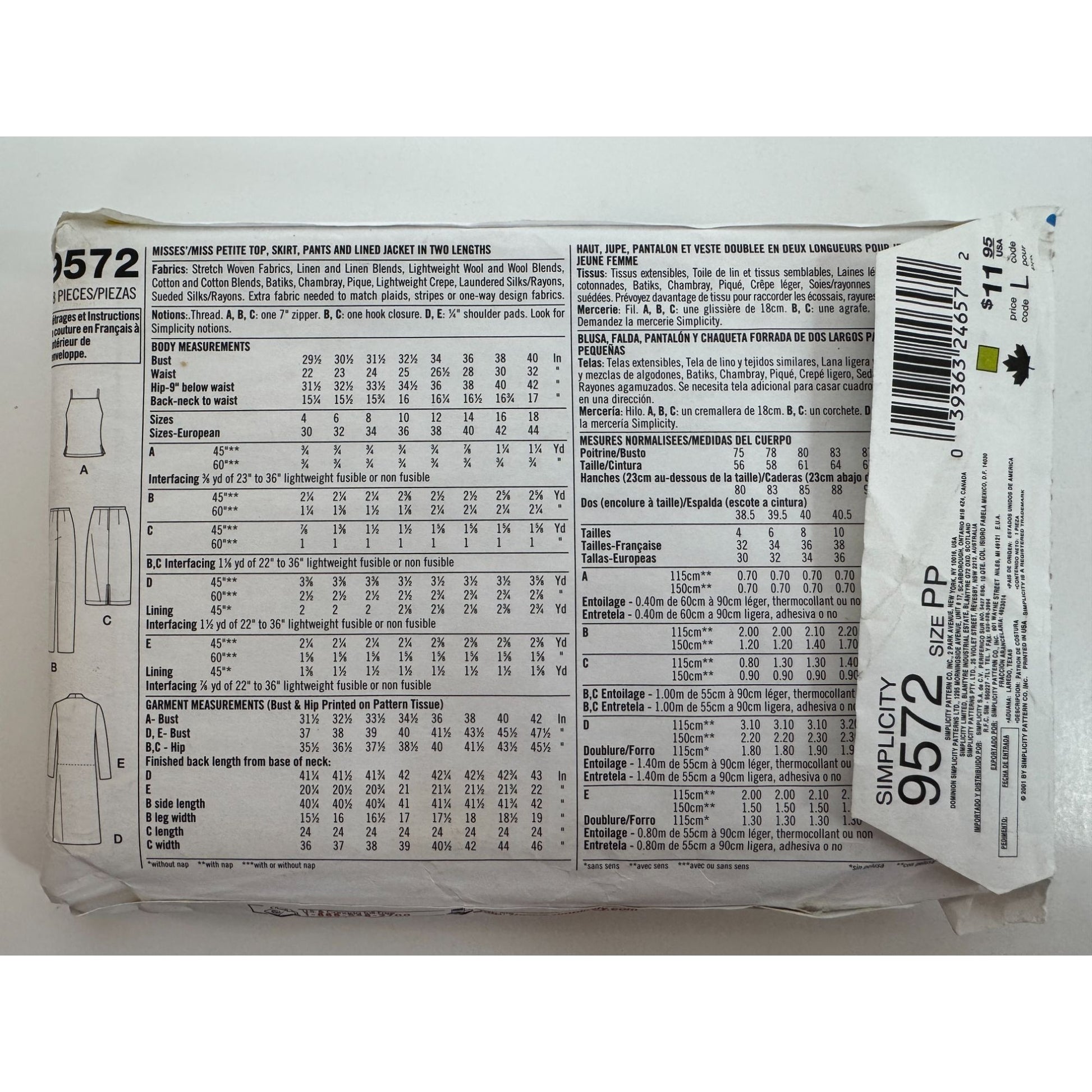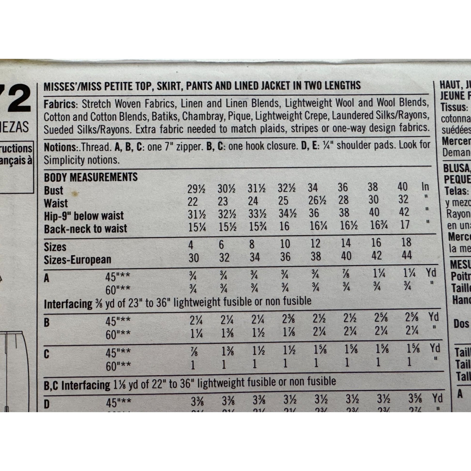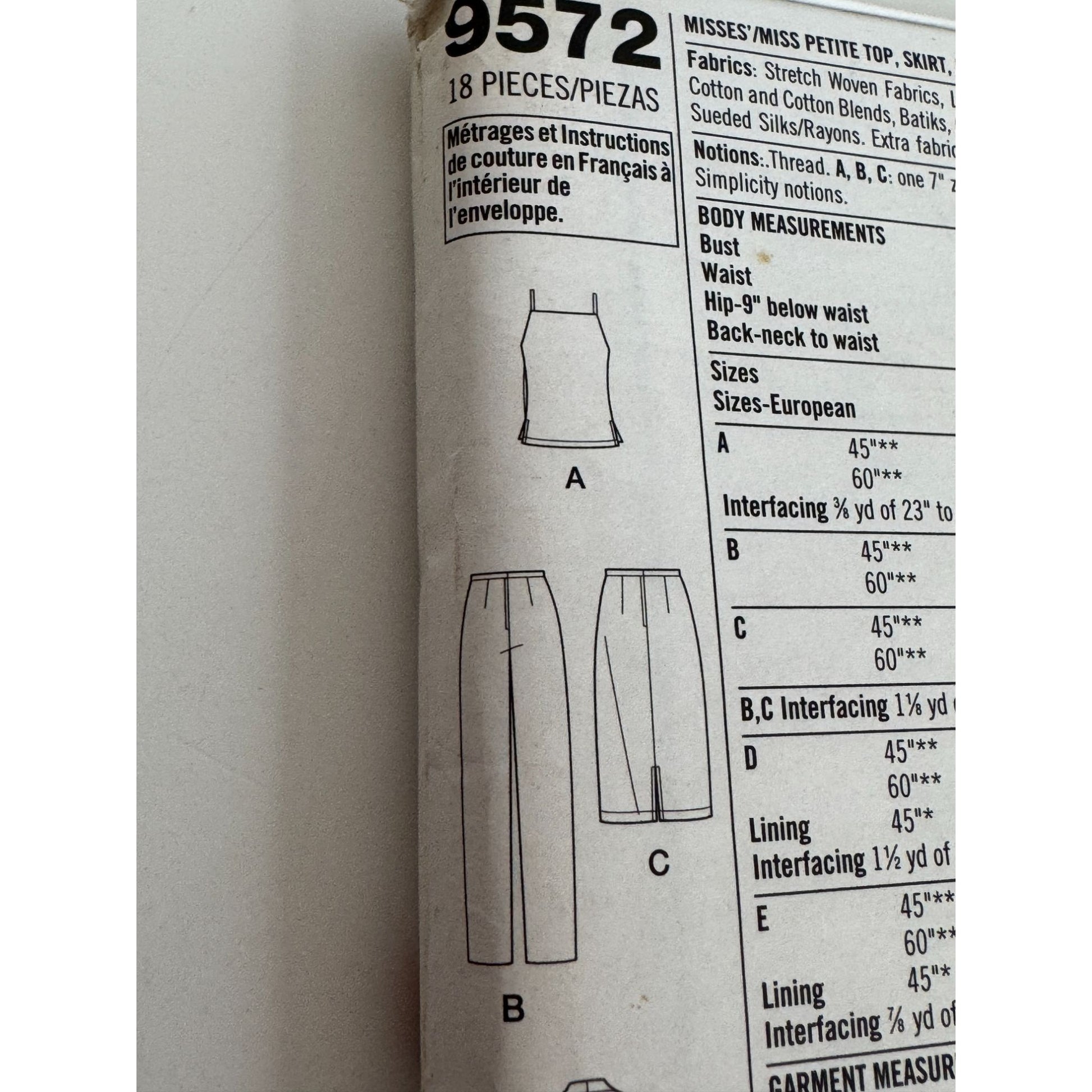 Simplicity Sewing Pattern 9572: Top, Skirt, Pants and Lined Jacket
