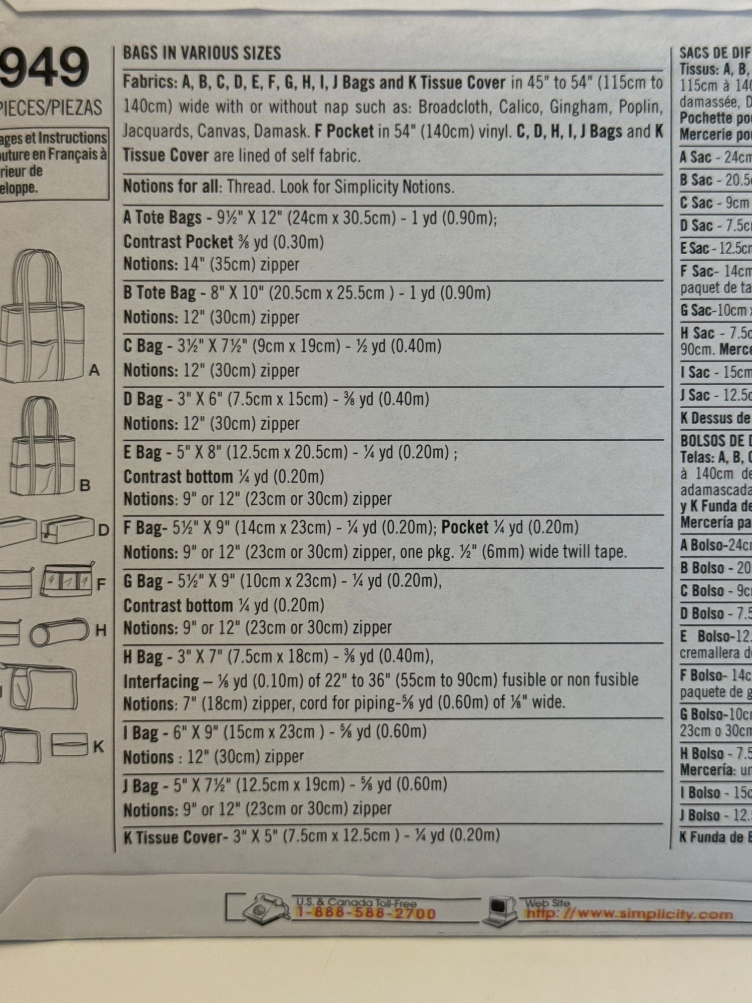 Simplicity Crafts Sewing Pattern 9949: Bags