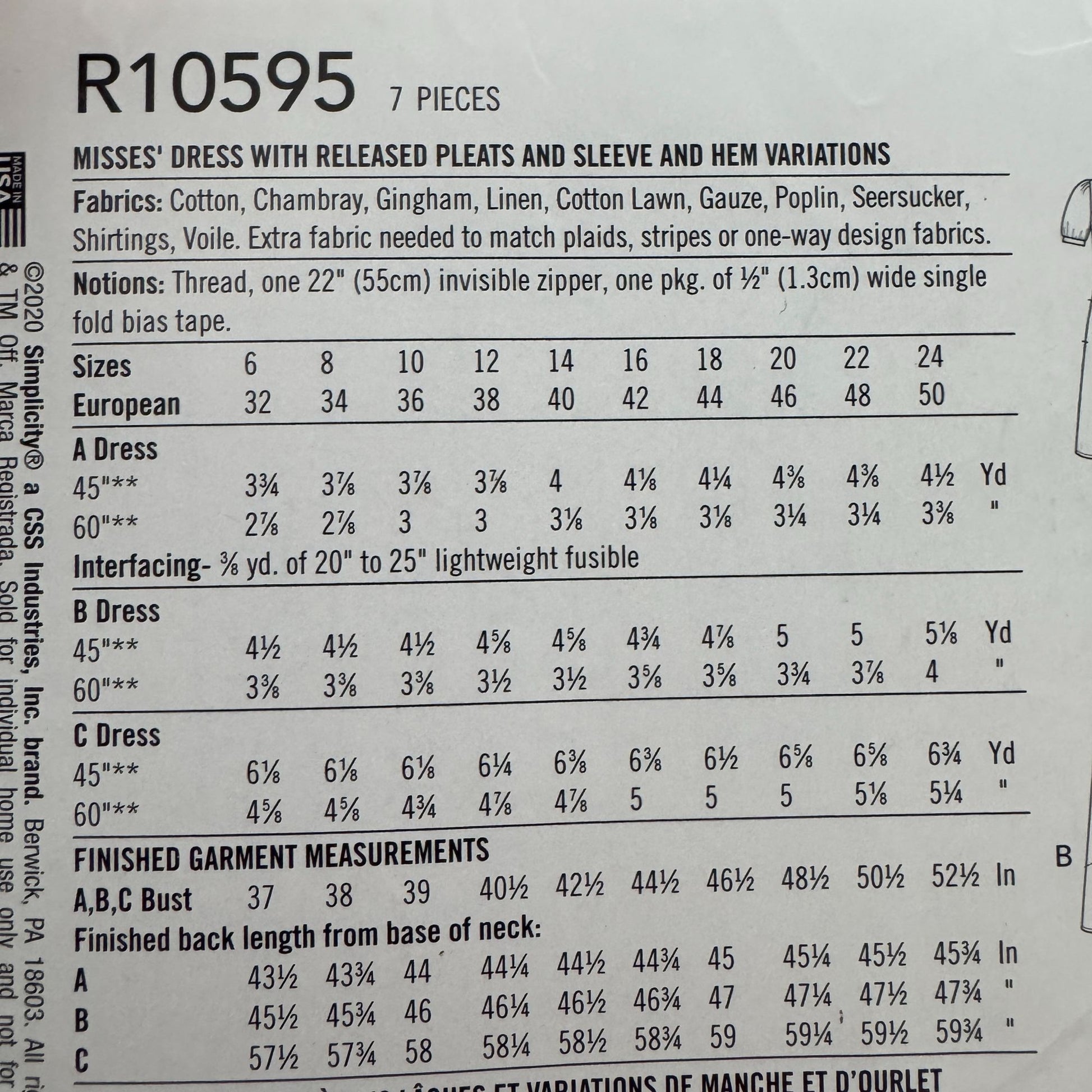 Simplicity Sewing Pattern R10595: Misses' Dress