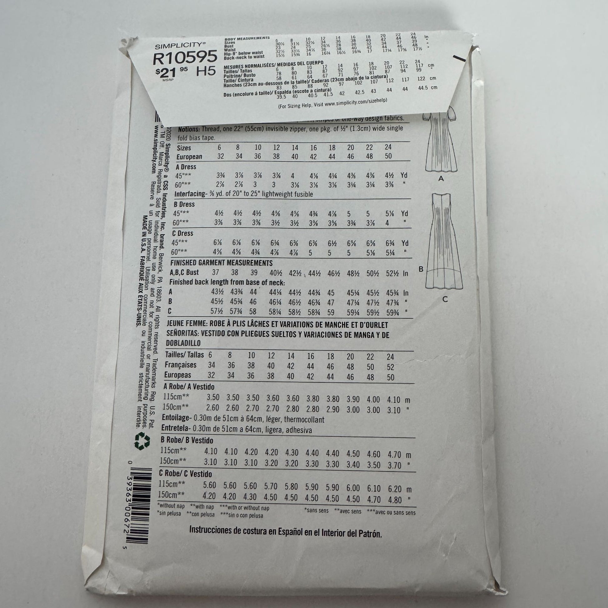 Simplicity Sewing Pattern R10595 Midi or Maxi Dress Released Pleats 6-14 Uncut