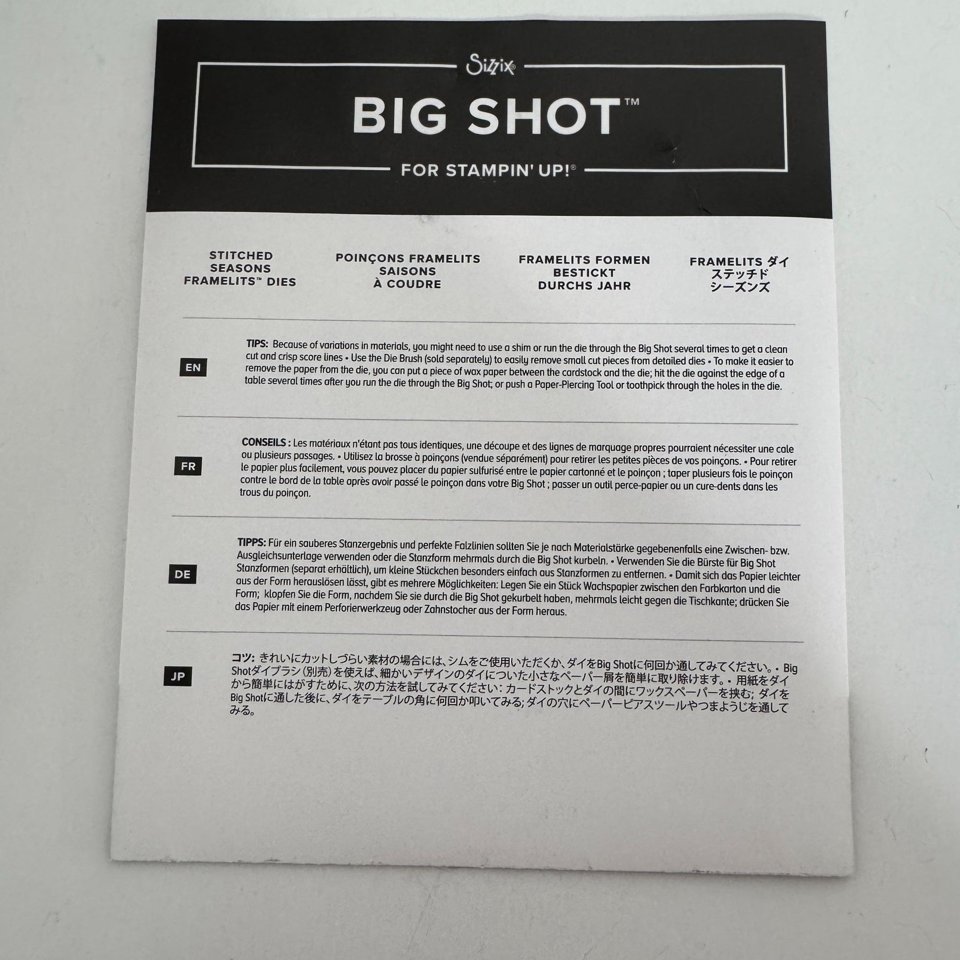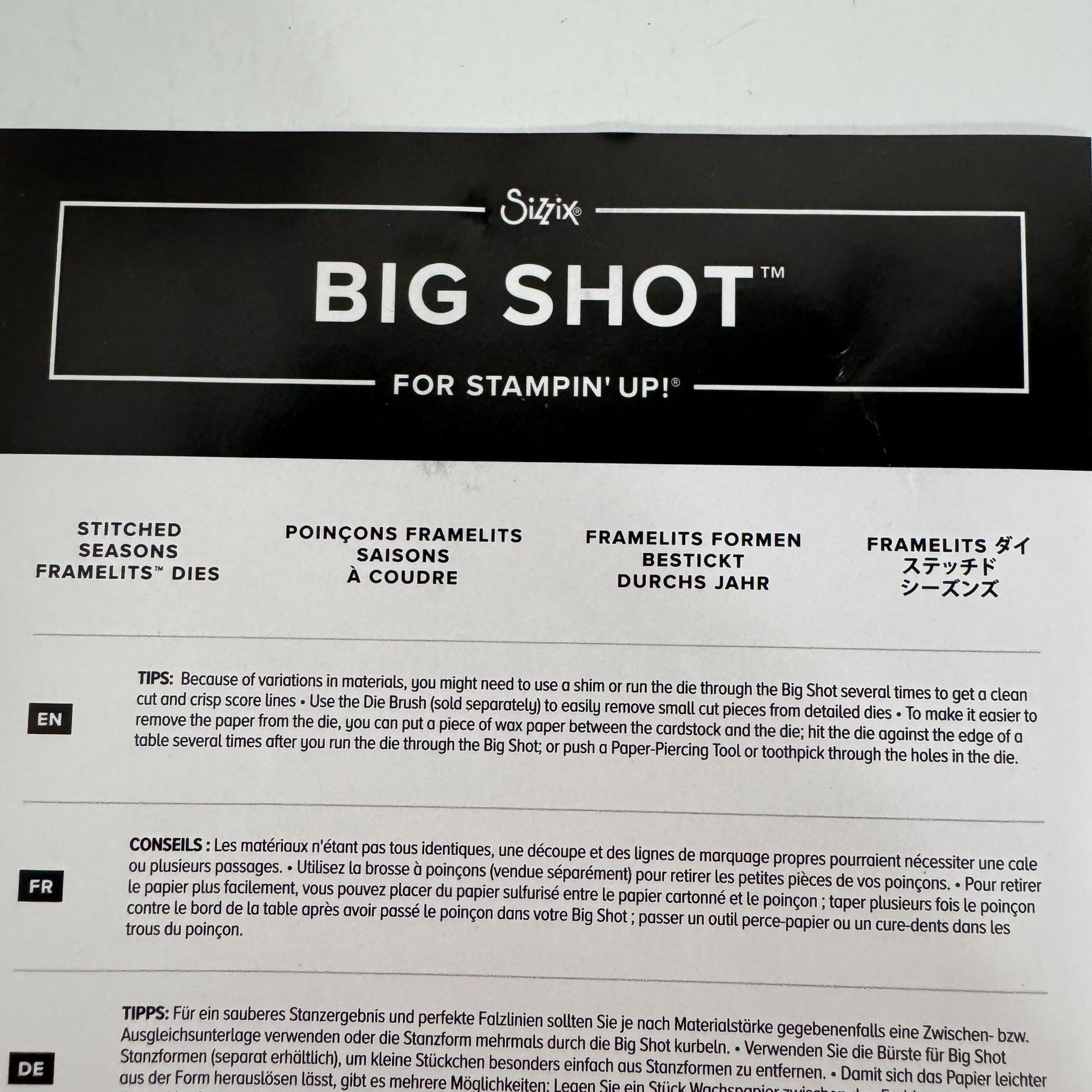 • Compatible with Big Shot machine