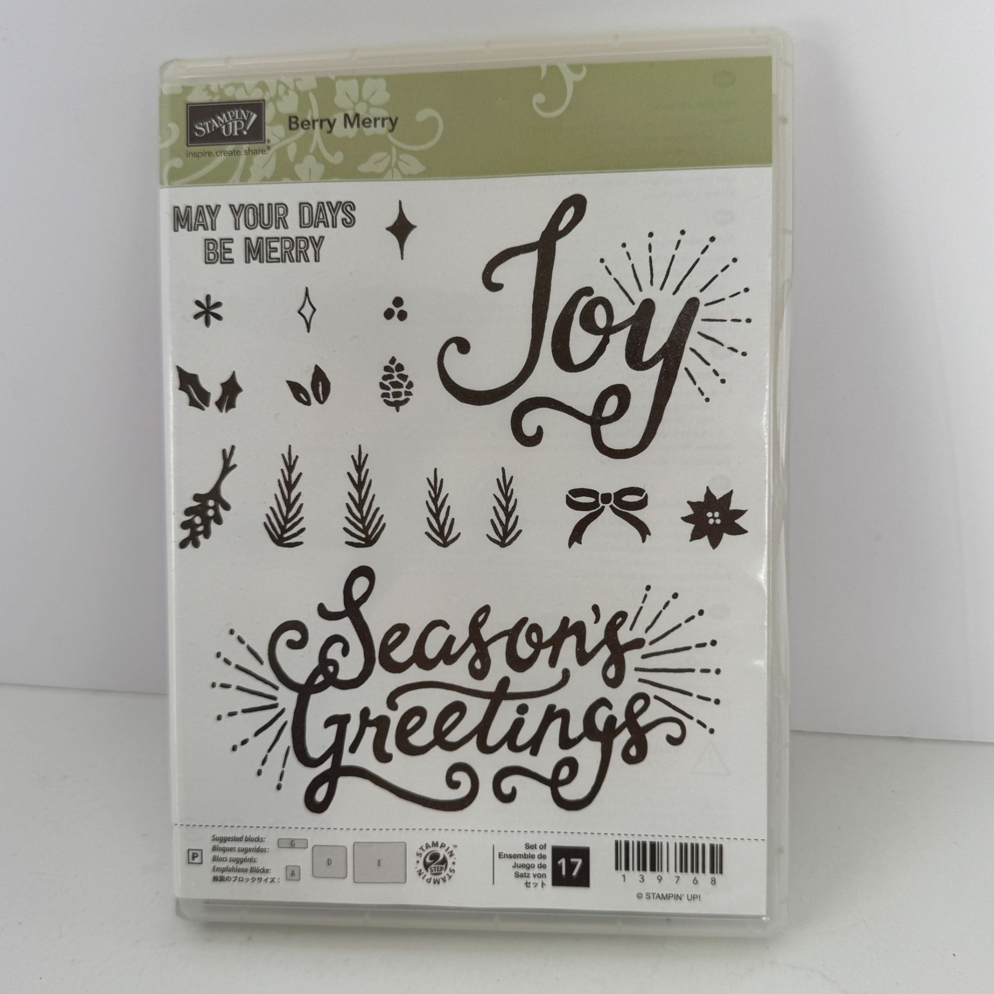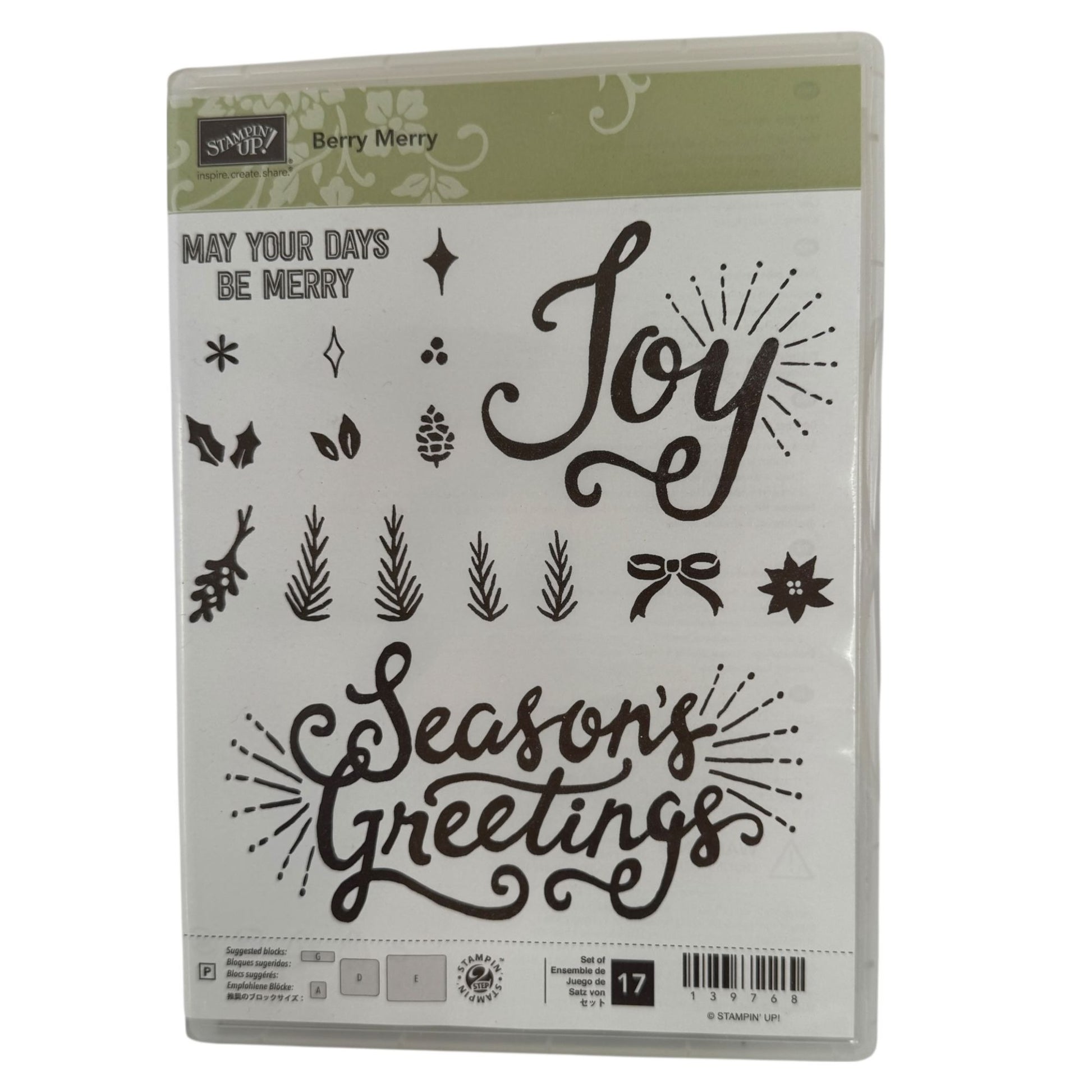 Stampin Up Acrylic Stamp Berry Merry Set Holiday Seasons Greetings Christmas