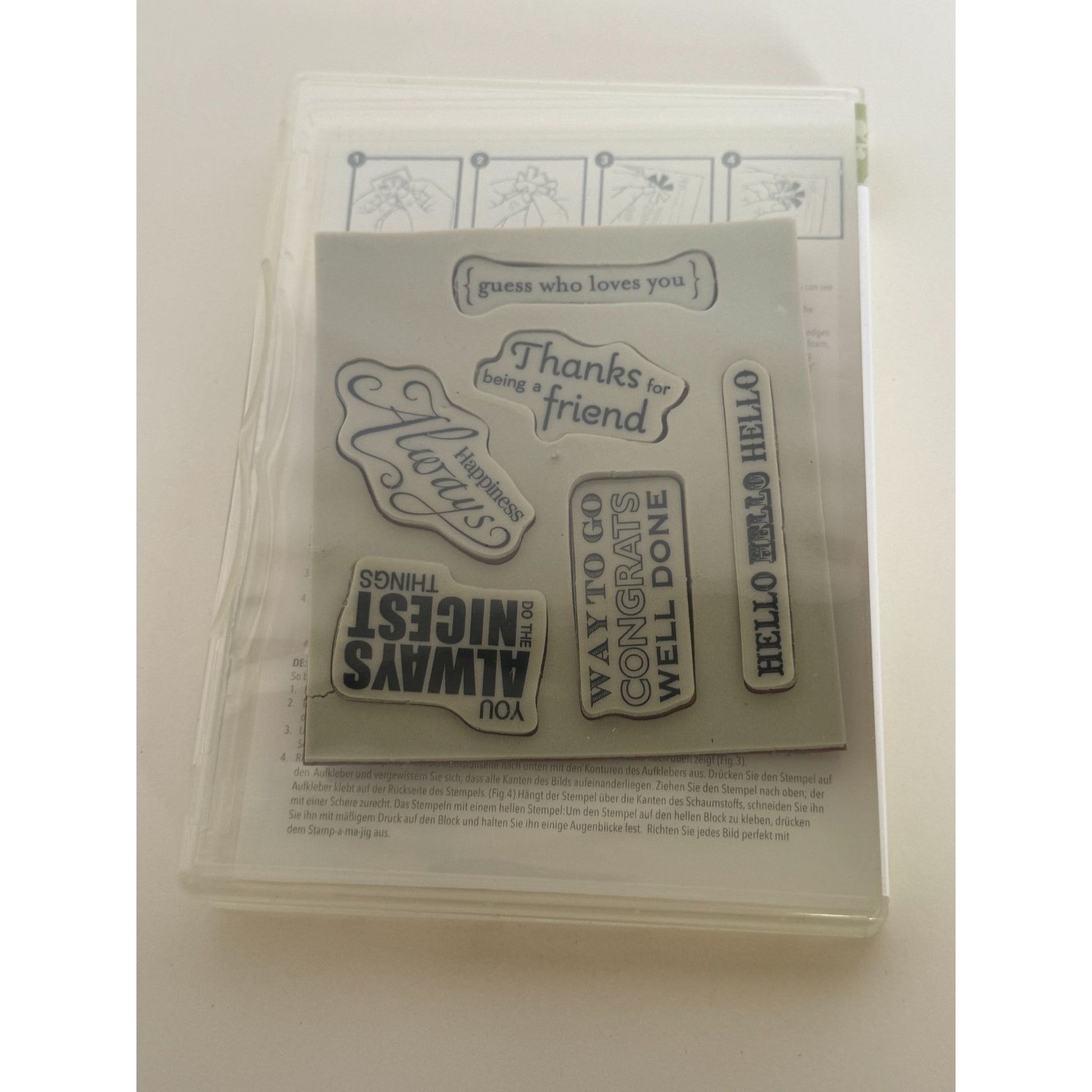 Stampin Up Clear Mount Rubber Stamp Set Happy Greetings Guess Who Loves You Word