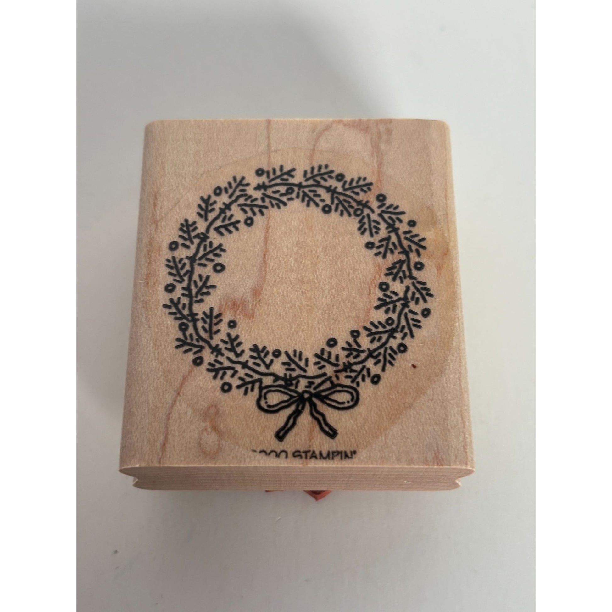 Stampin Up Rubber Stamp Christmas Wreath Bow Winter Holidays Card Making Round