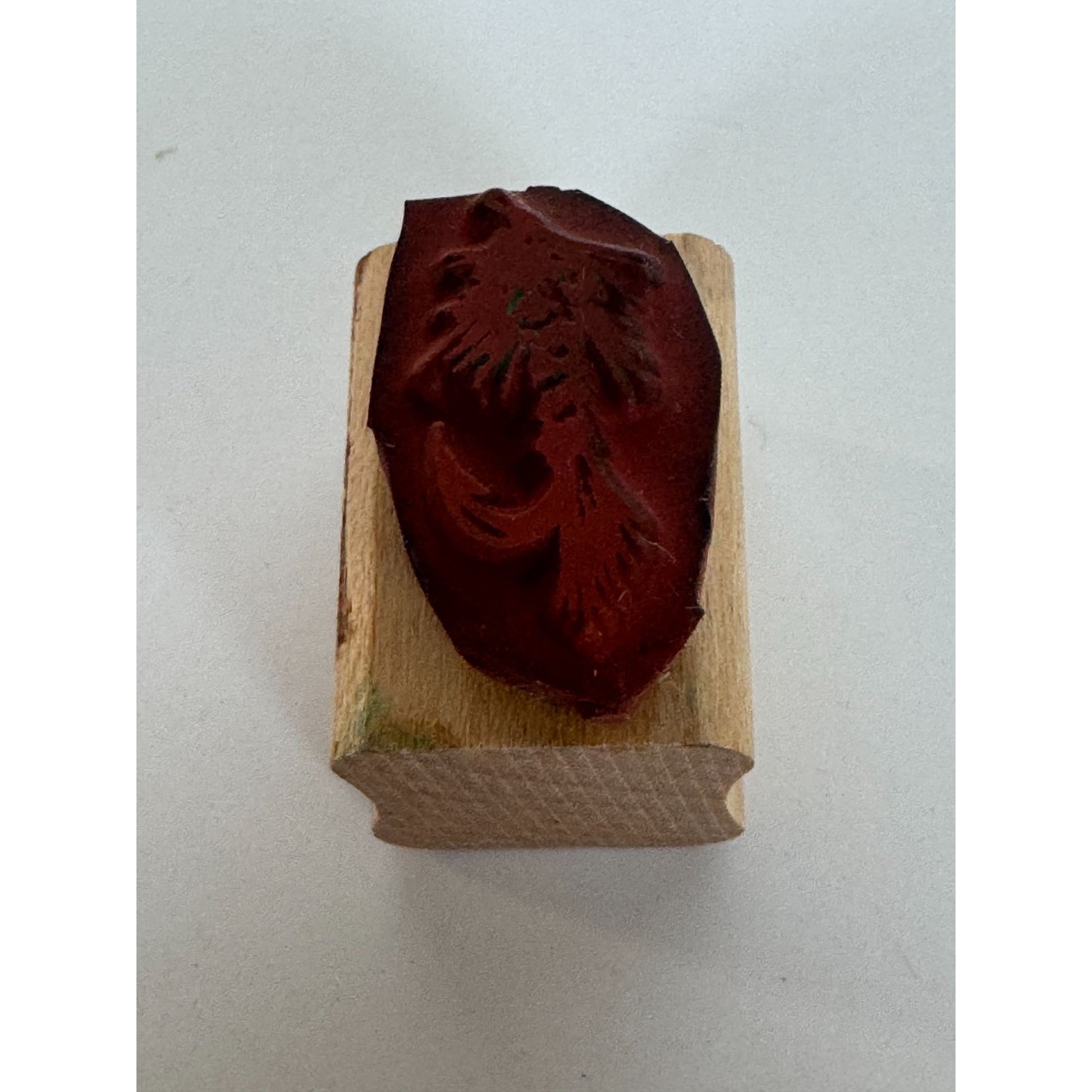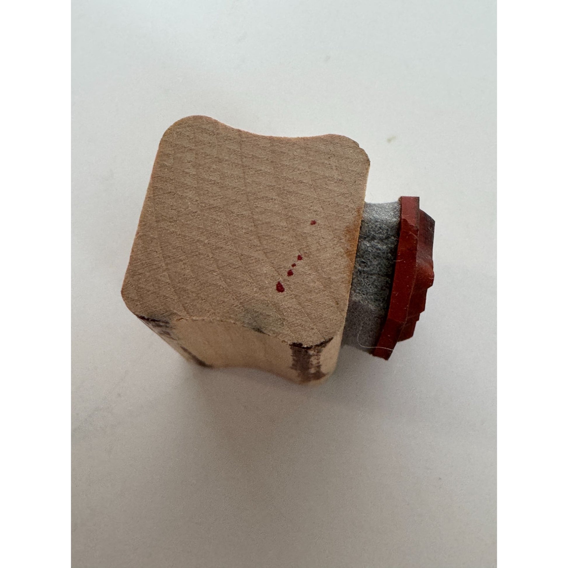 • Ink stains on wood mount, light ink stain on rubber