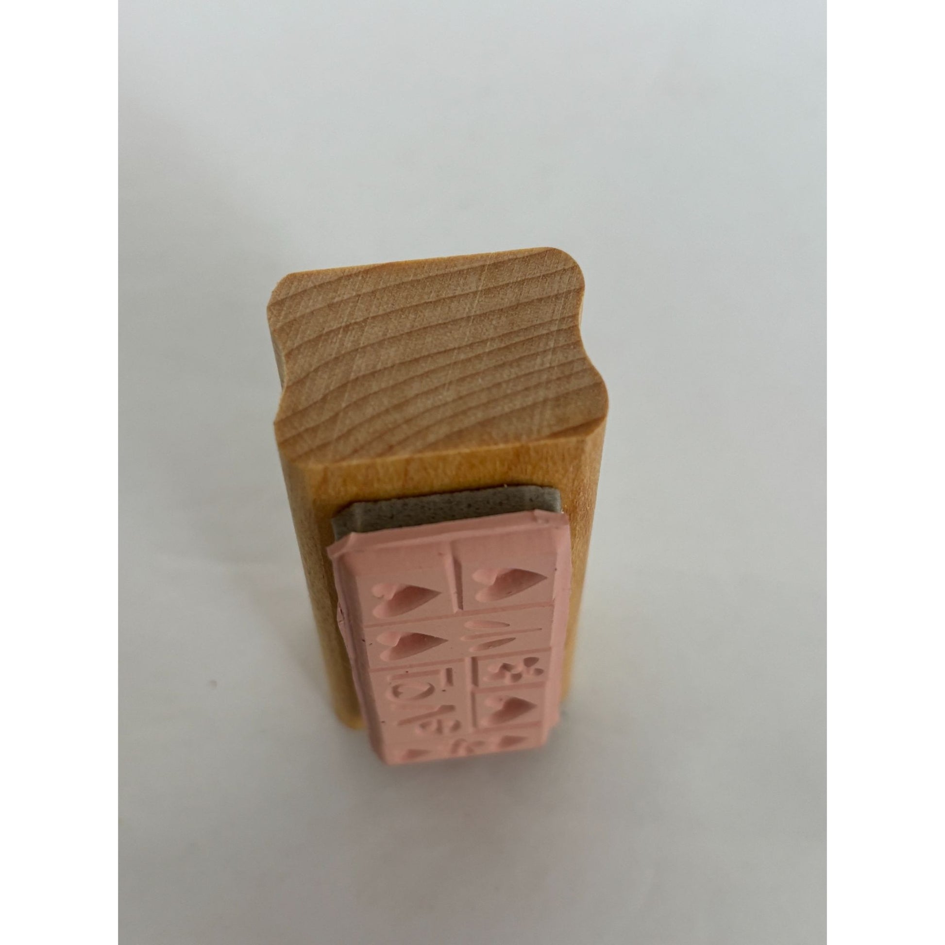 This rubber stamp features hearts, flowers, and the word "Love," ideal for crafting projects, cardmaking, scrapbooking, and personalized stationery.