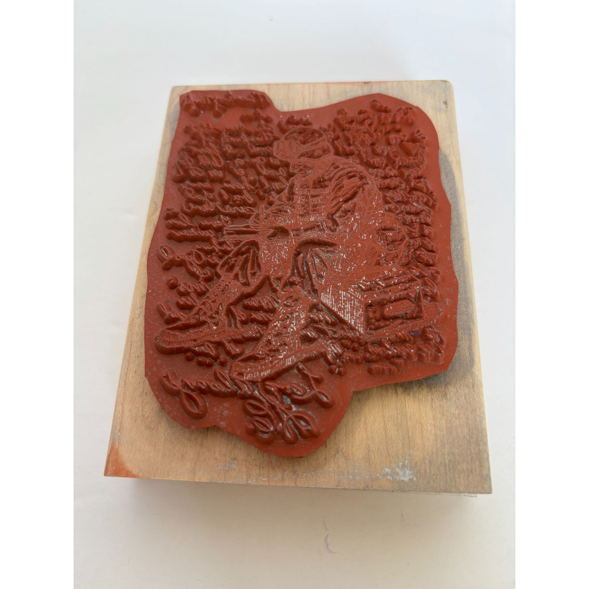 • Set of 5 wood-mounted rubber stamps (the set originally came with six, this is missing the ribbon stamp)