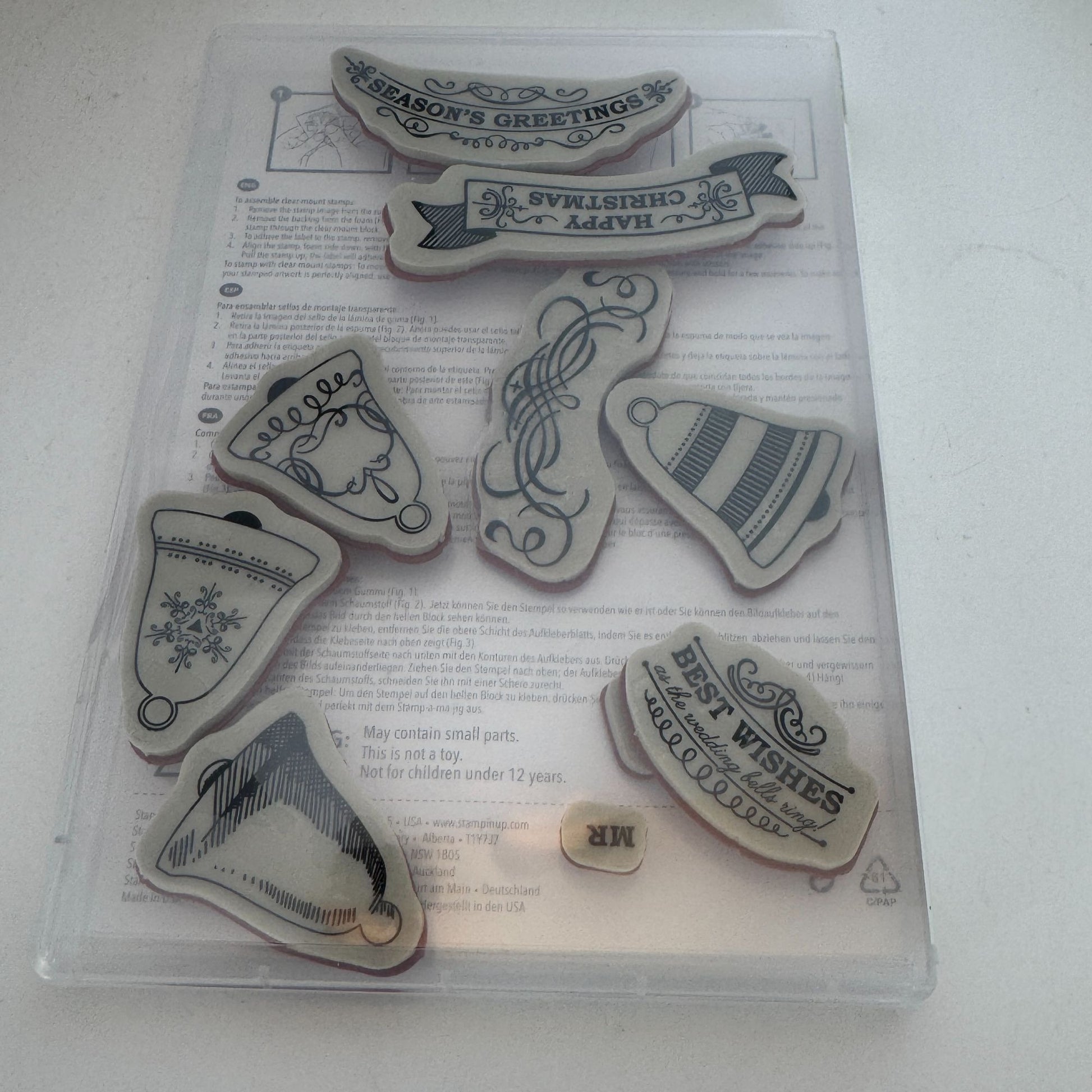 Stampin Up Rubber Stamp Set Seasonal Bells Christmas Wedding Seasons Greetings
