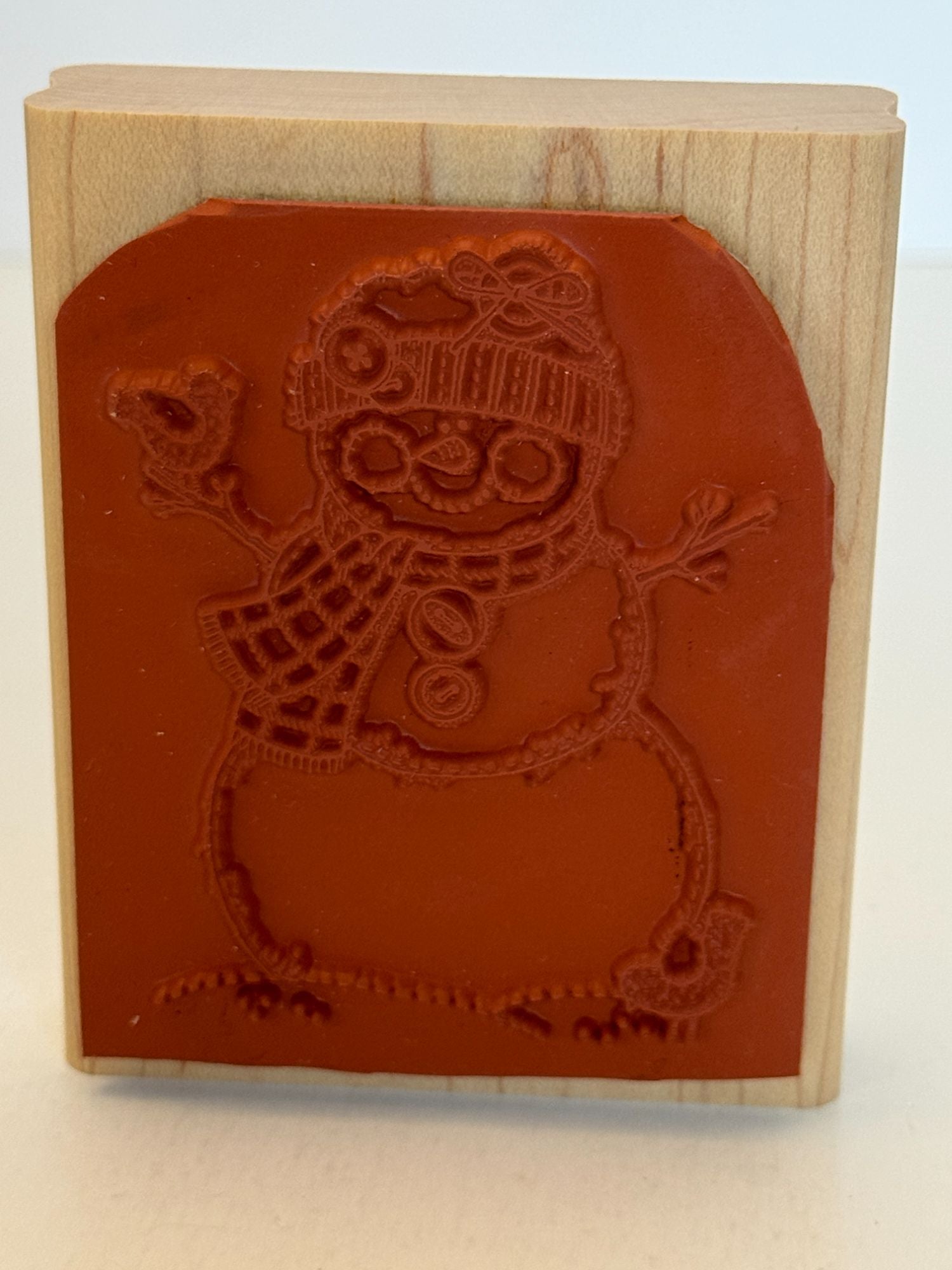 This rubber stamp is crafted from quality wood, offering a sturdy and reliable tool for cardmaking and other creative projects. Its charming snowman design adds a touch of whimsy to winter-themed crafts, making it an essential addition for crafters and scrapbookers looking to enhance their holiday projects.