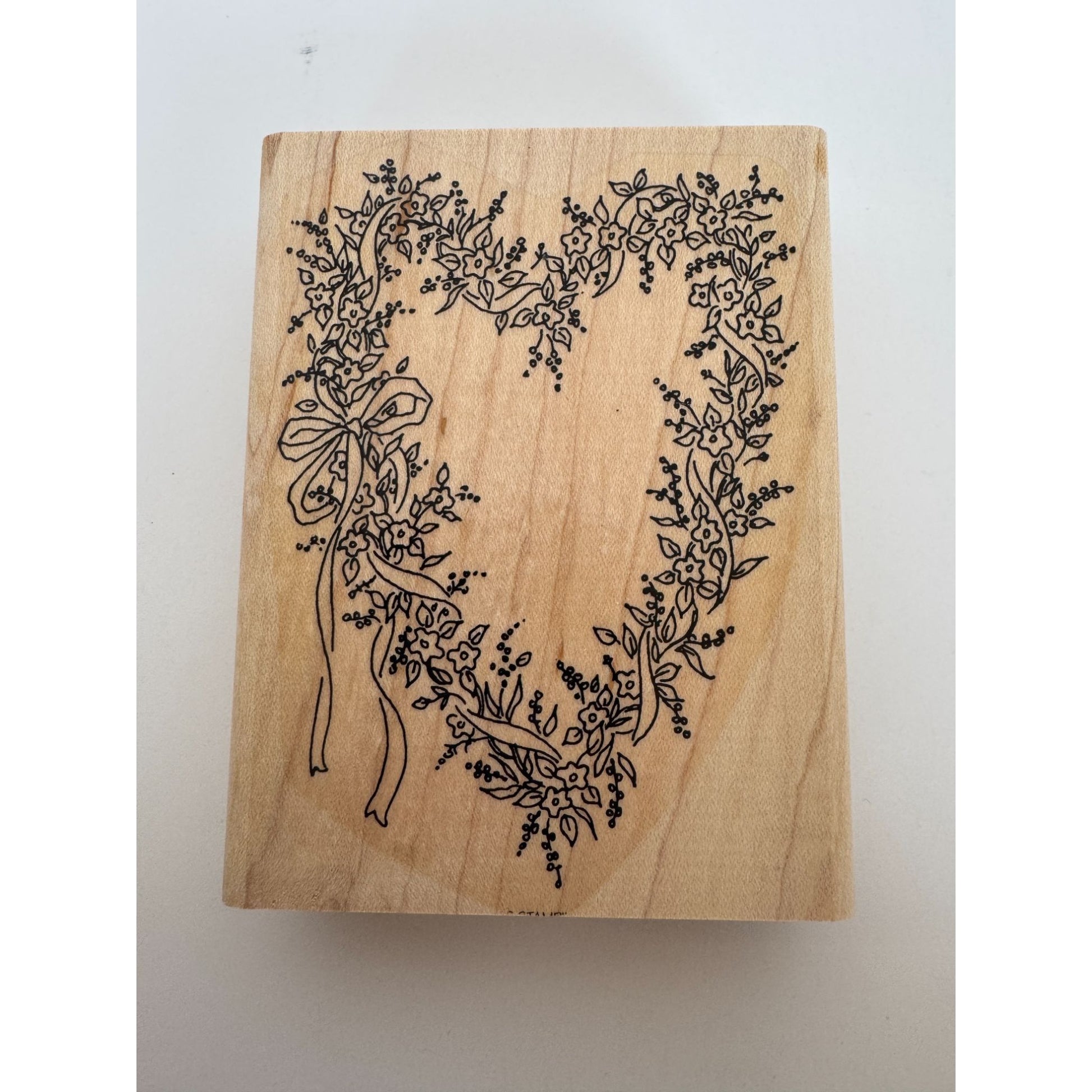 Stampin Up Wood Rubber Stamp Floral Wreath Heart Spring Flowers Romantic Love