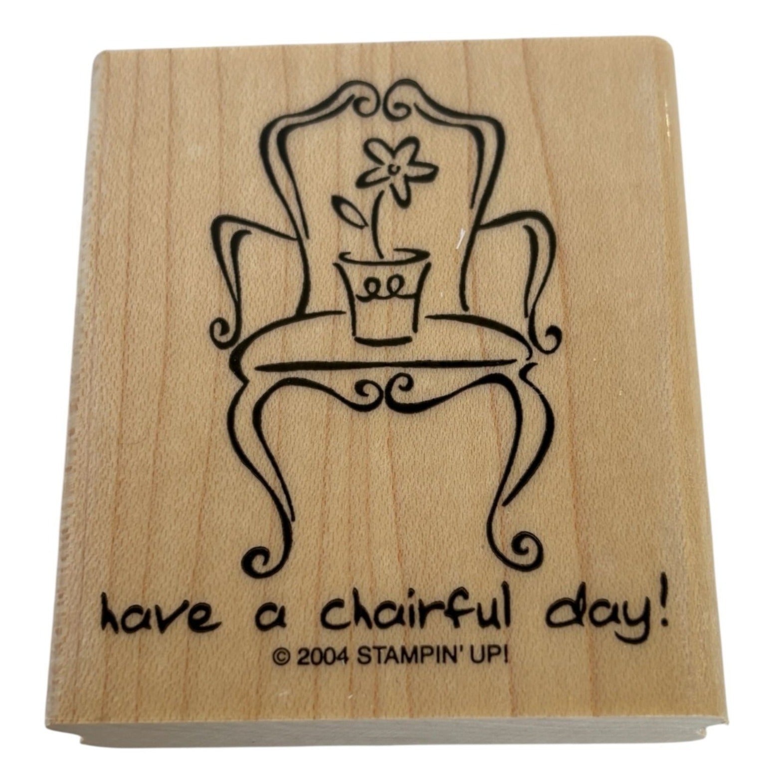 Stampin Up Wooden Rubber Stamp Have A Cheerful Day Chair Pun Funny Card Making