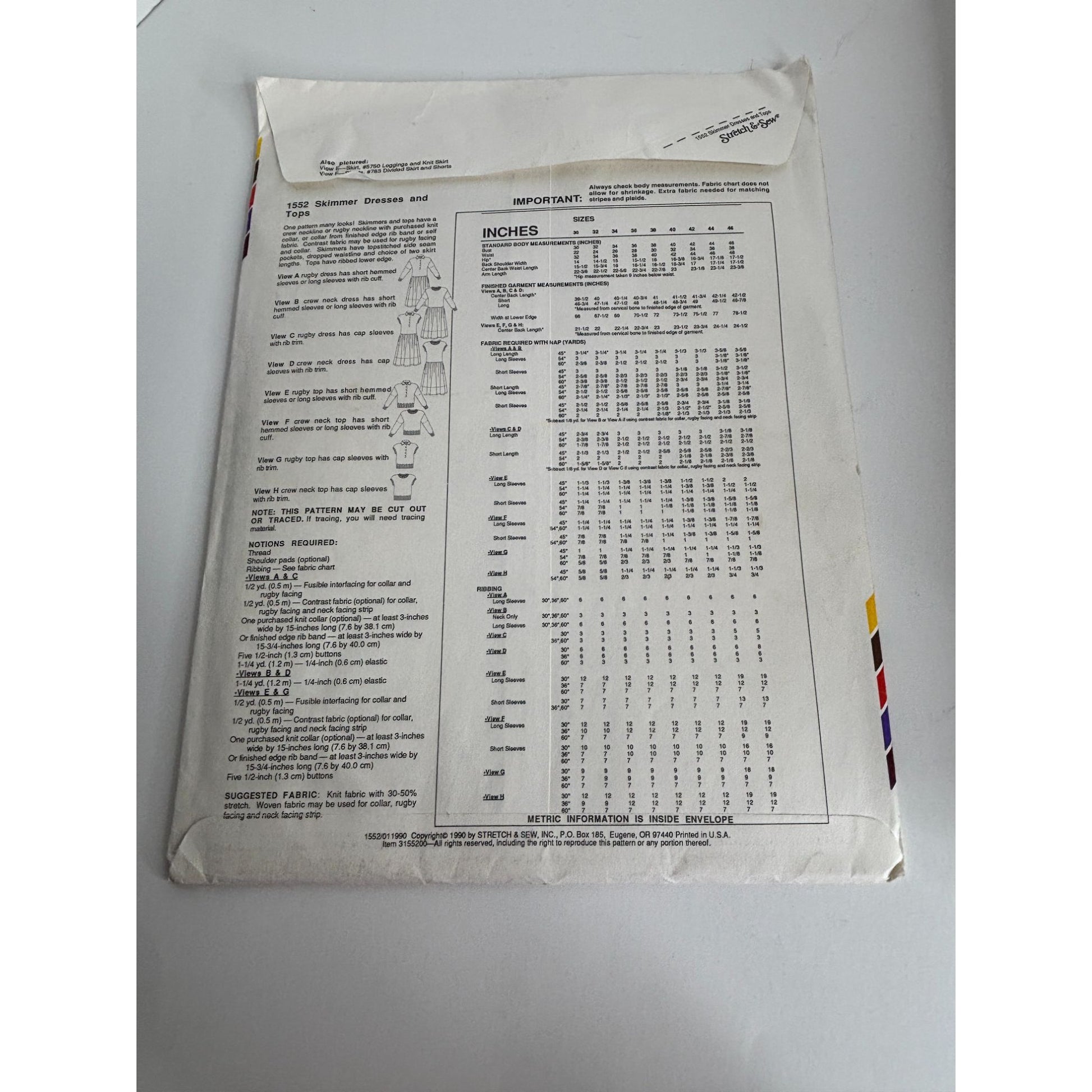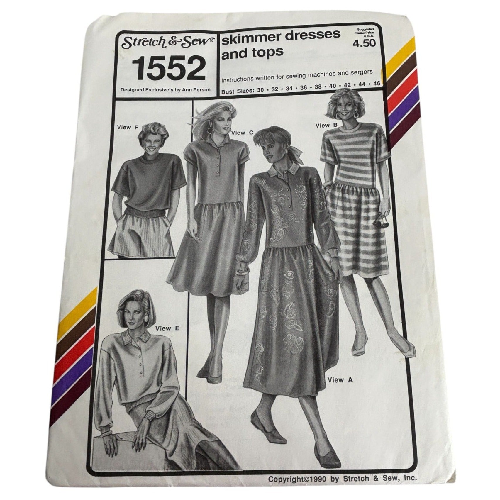Stretch and Sew Sewing Pattern 1552 Skimmer Dresses Tops 1990 UC Bust 30-46 inch