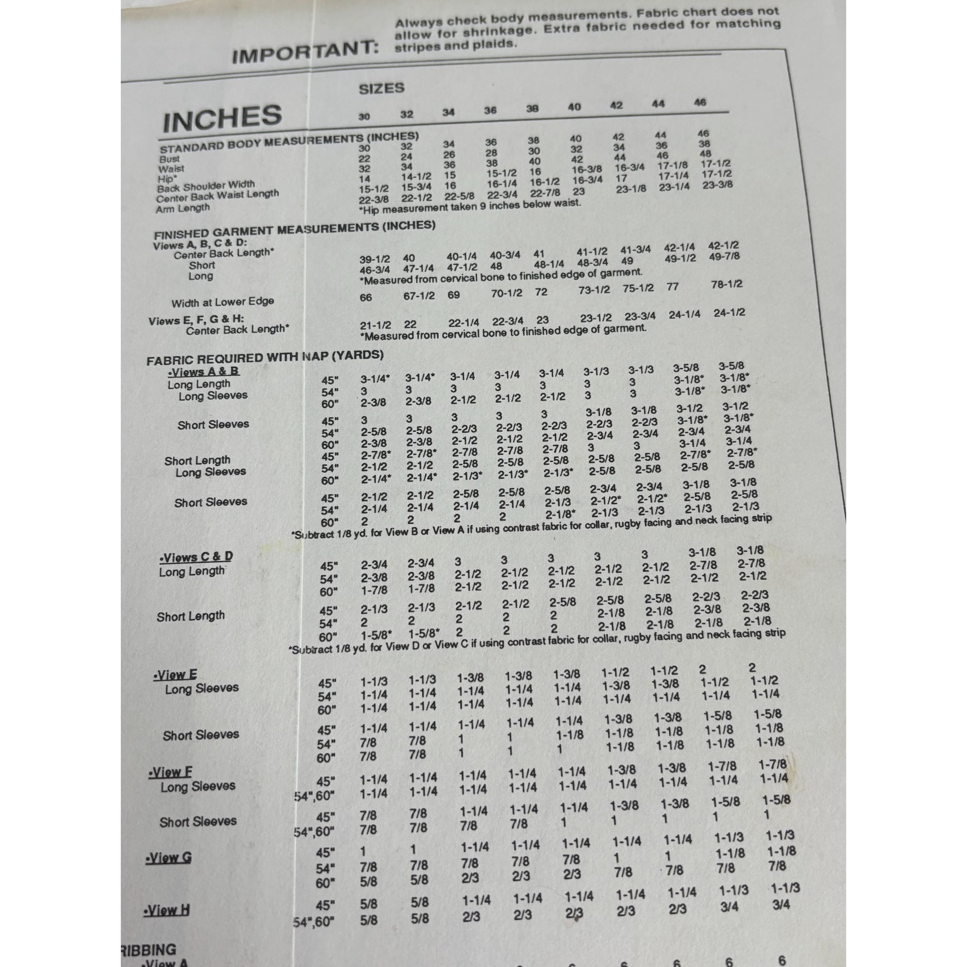 • Bust sizes: 30 - 46 inches