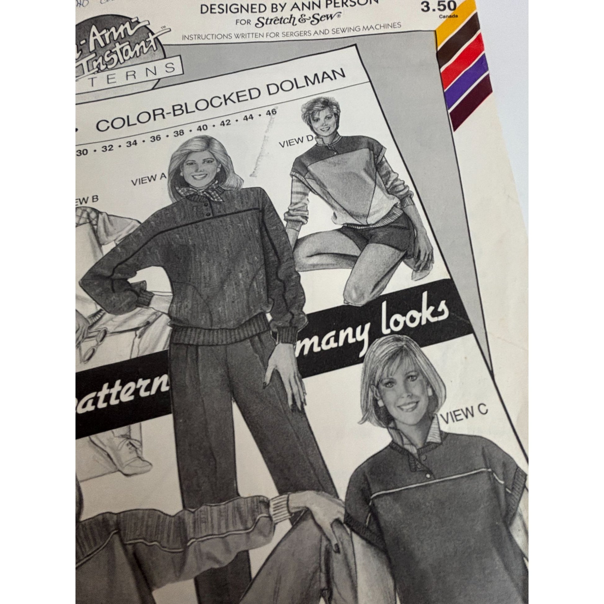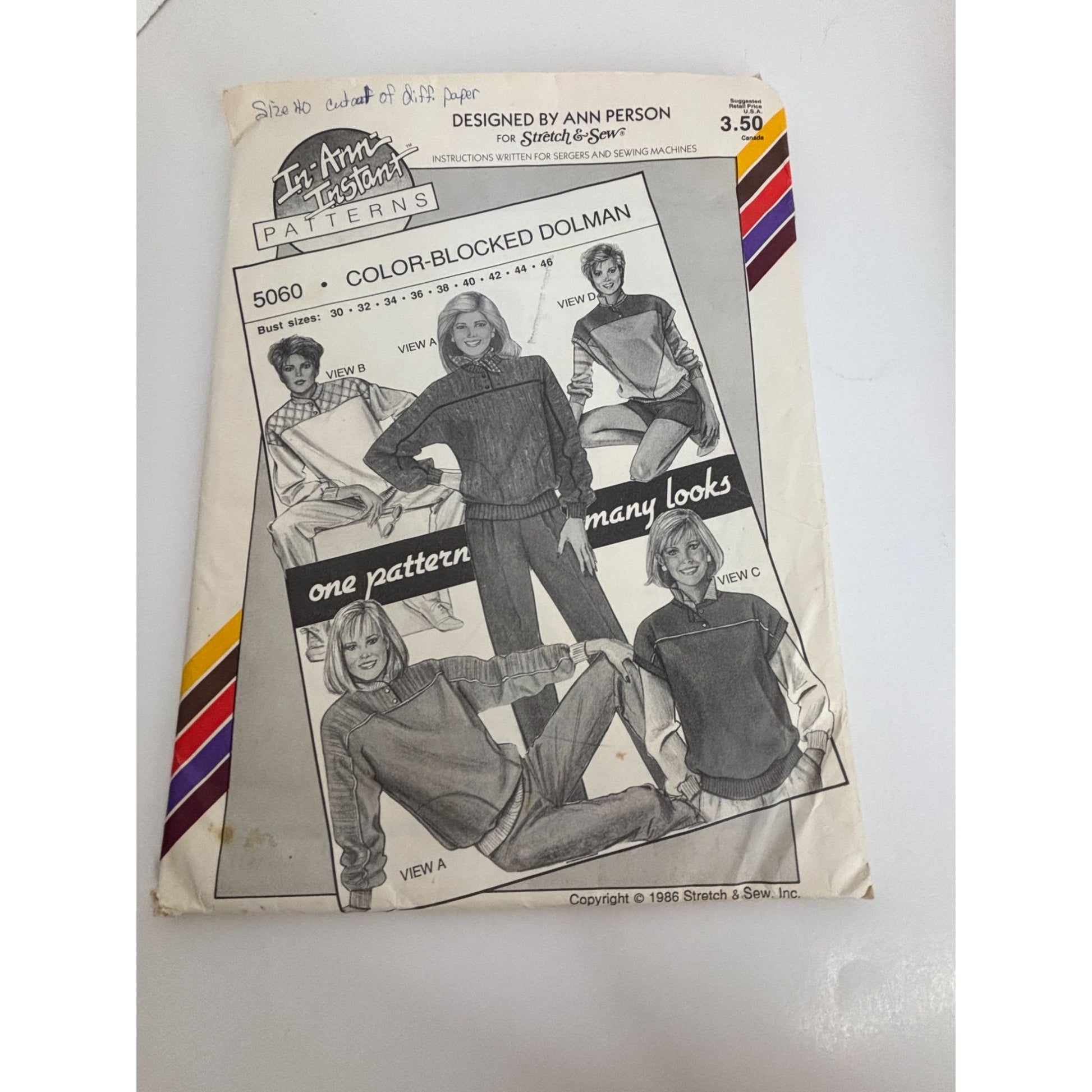 This vintage sewing pattern from 1986 offers a versatile design for creating color-blocked dolman tops. It includes multiple bust sizes, allowing for a customizable fit. Designed by Ann Person, it caters to sewing enthusiasts seeking to craft stylish, retro-inspired tops that highlight both comfort and fashion.