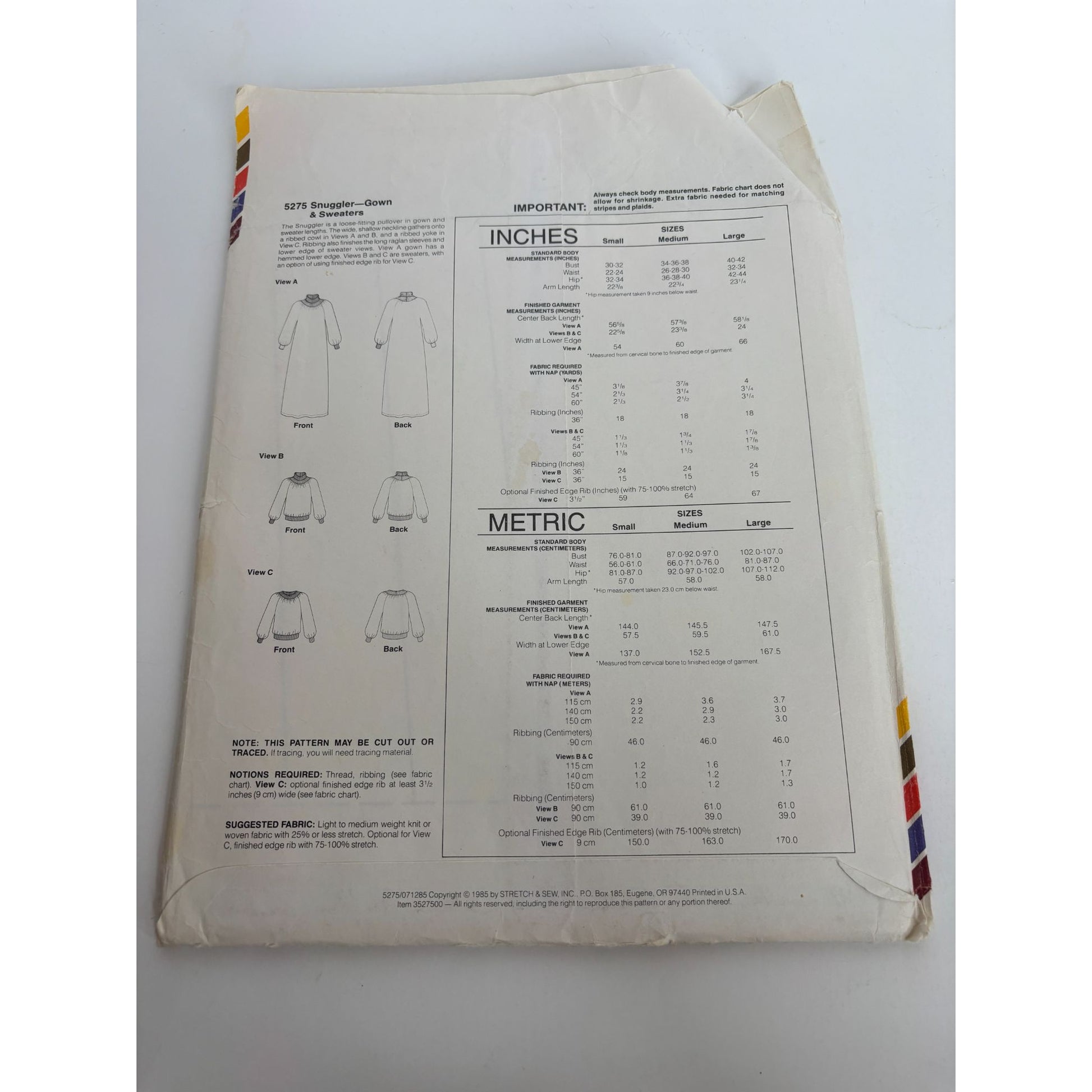 Stretch and Sew Sewing Pattern 5275 Snuggler Gown Dress Sweaters S M L Cowl Neck