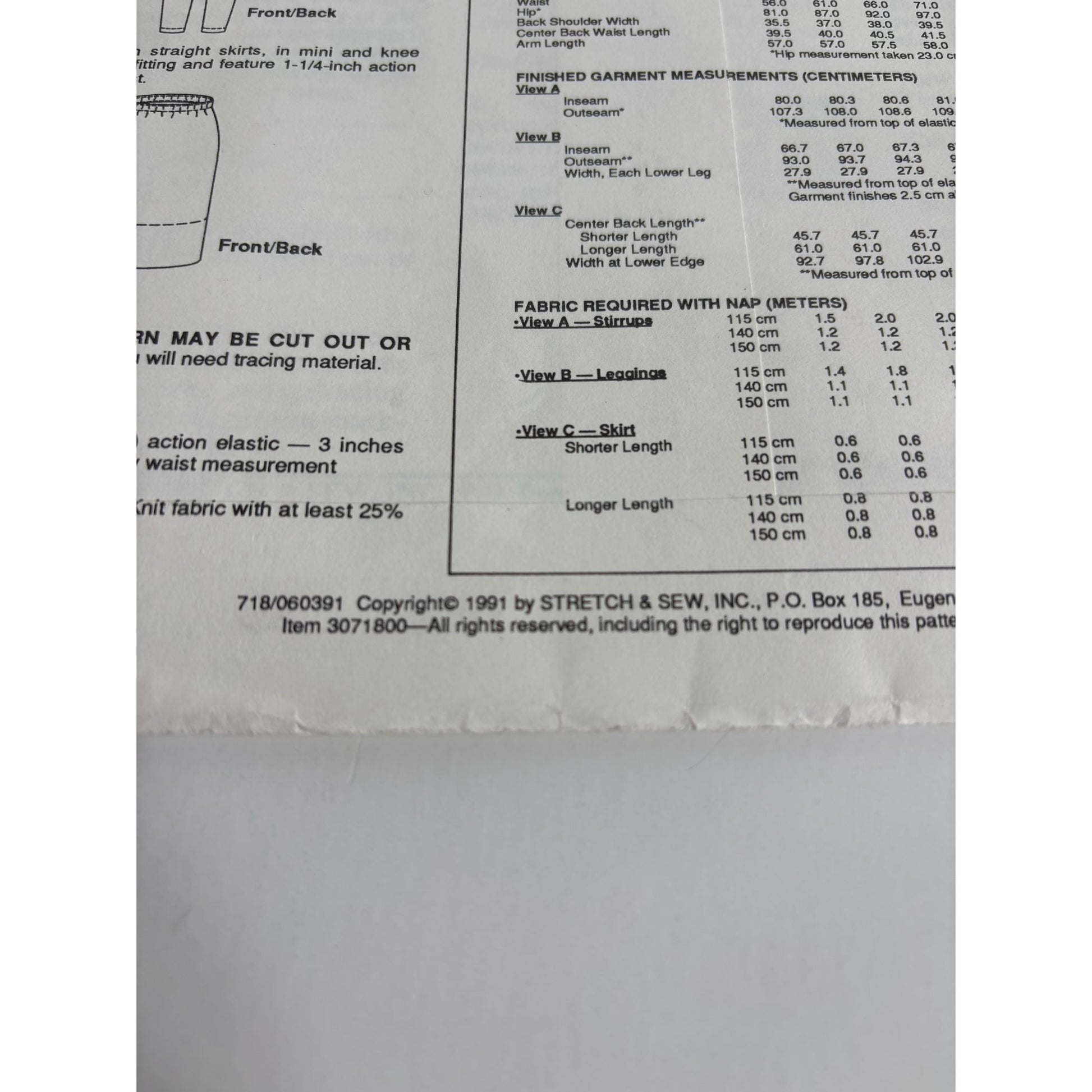 Stretch and Sew Sewing Pattern 718 Stretch Slim Fit Stirrup Pants Straight Skirt