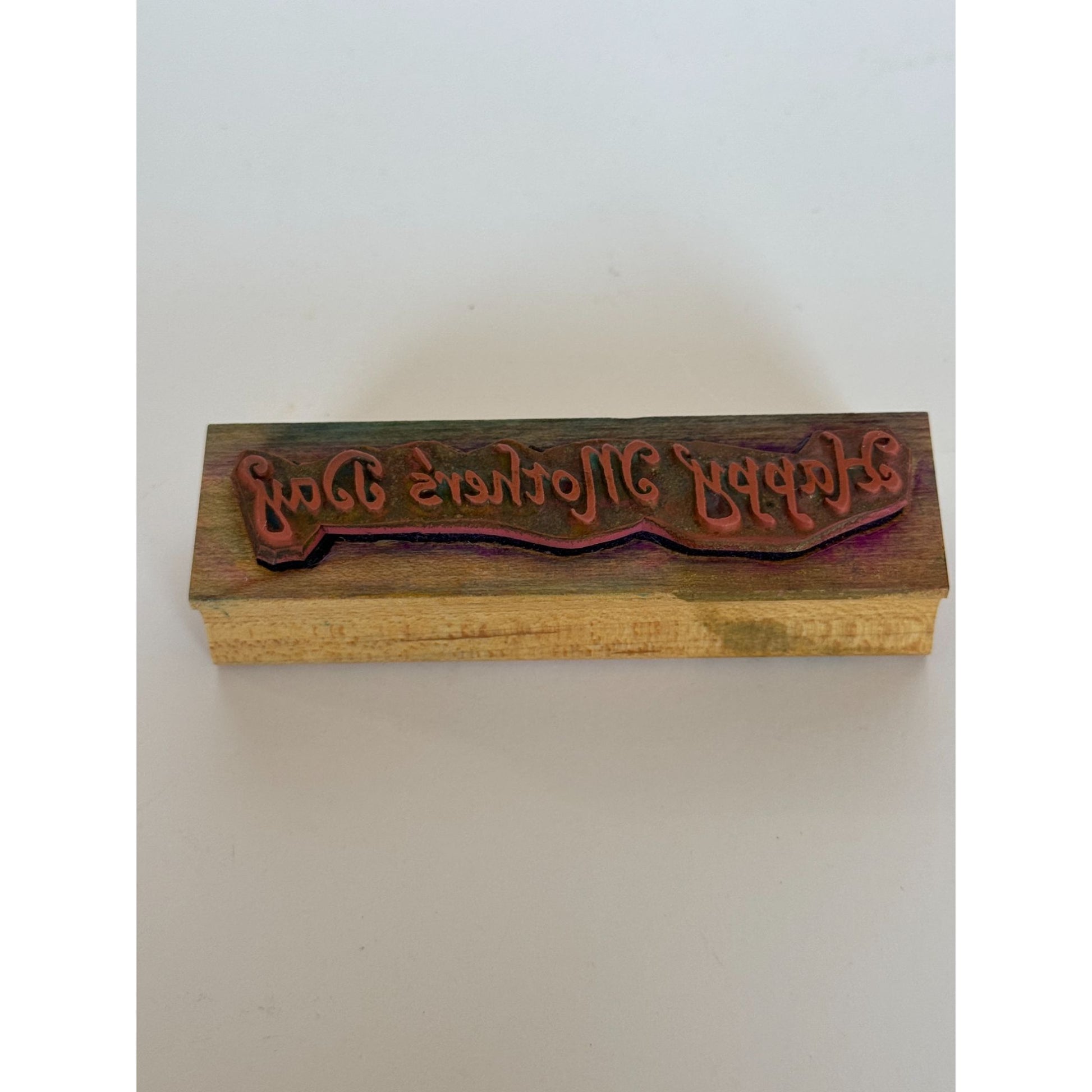 A durable rubber stamp with a wooden handle for creating beautiful "Happy Mother's Day" impressions on cards and gifts.