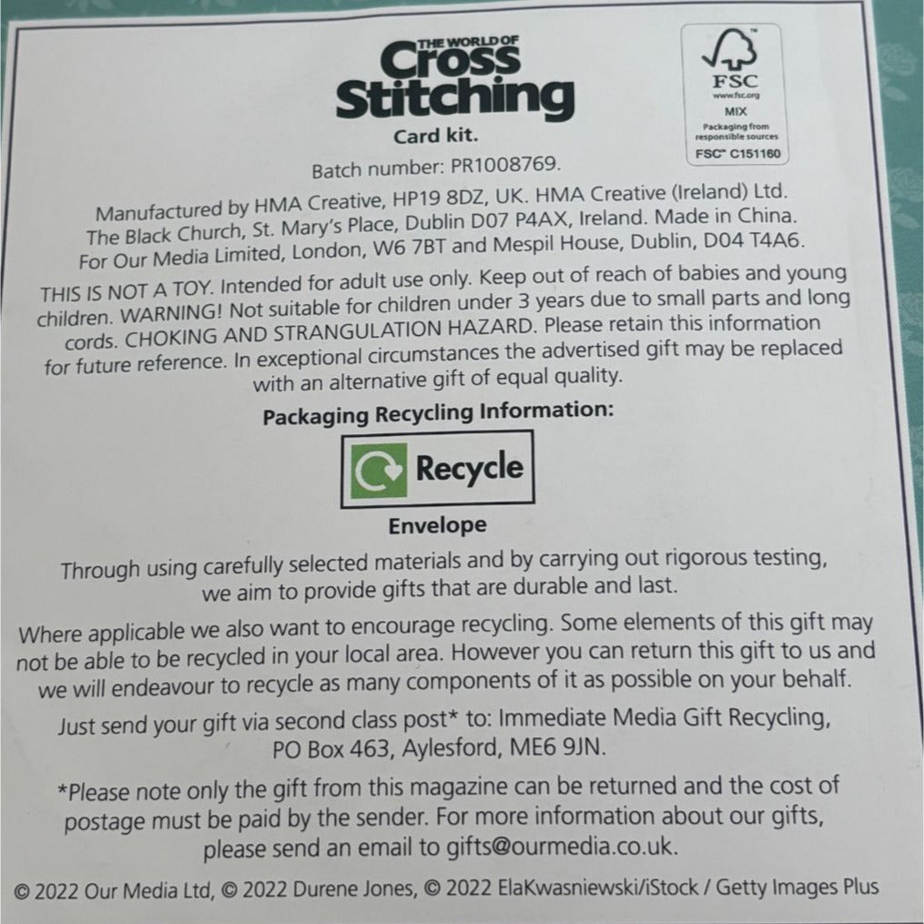 The World of Cross Stitching Cross Stitch Kit Greeting Card Floral Blooms Wreath