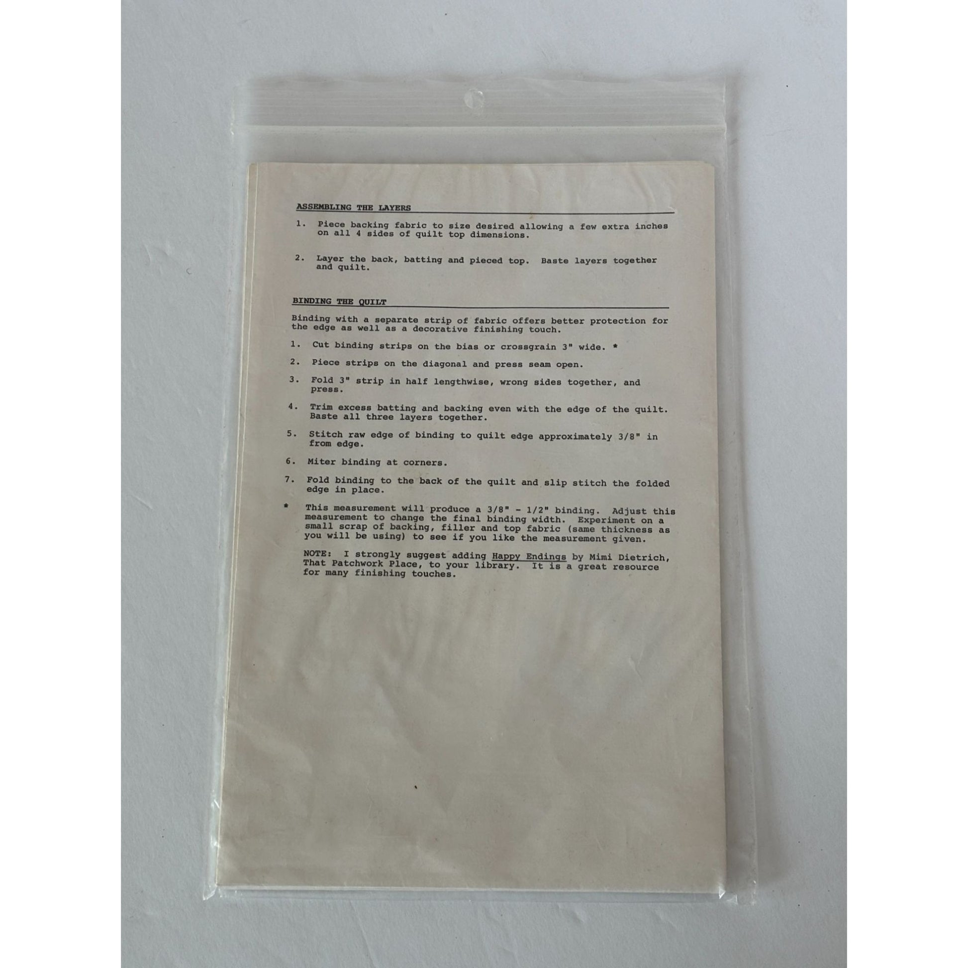• Notions Needed: Matching thread, Batting, Quilting Thread
