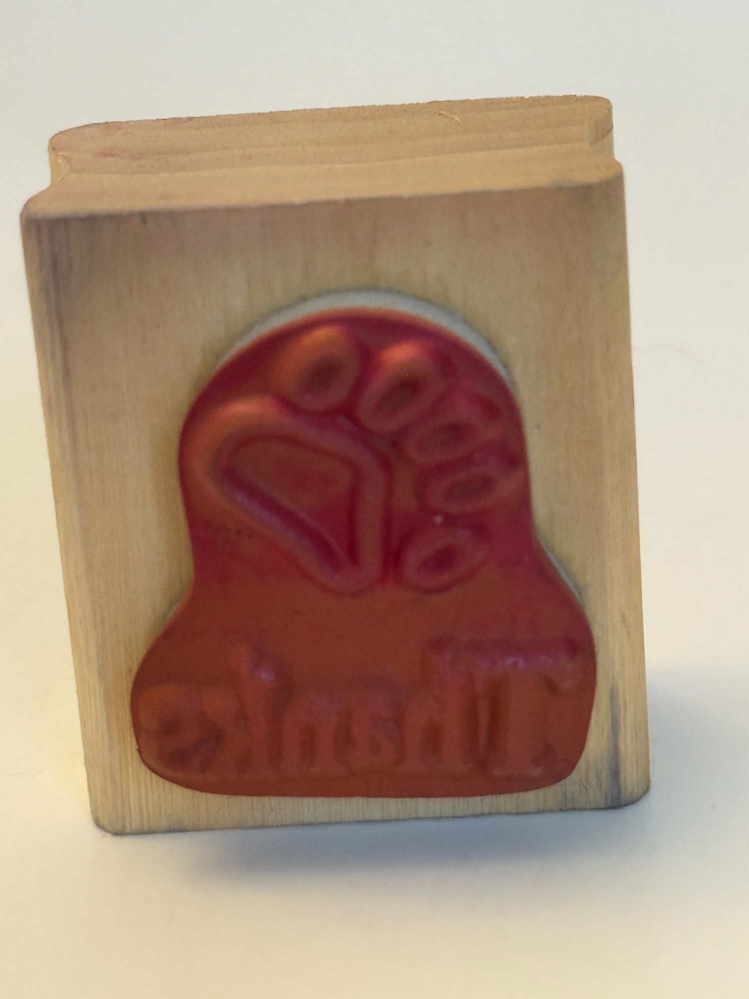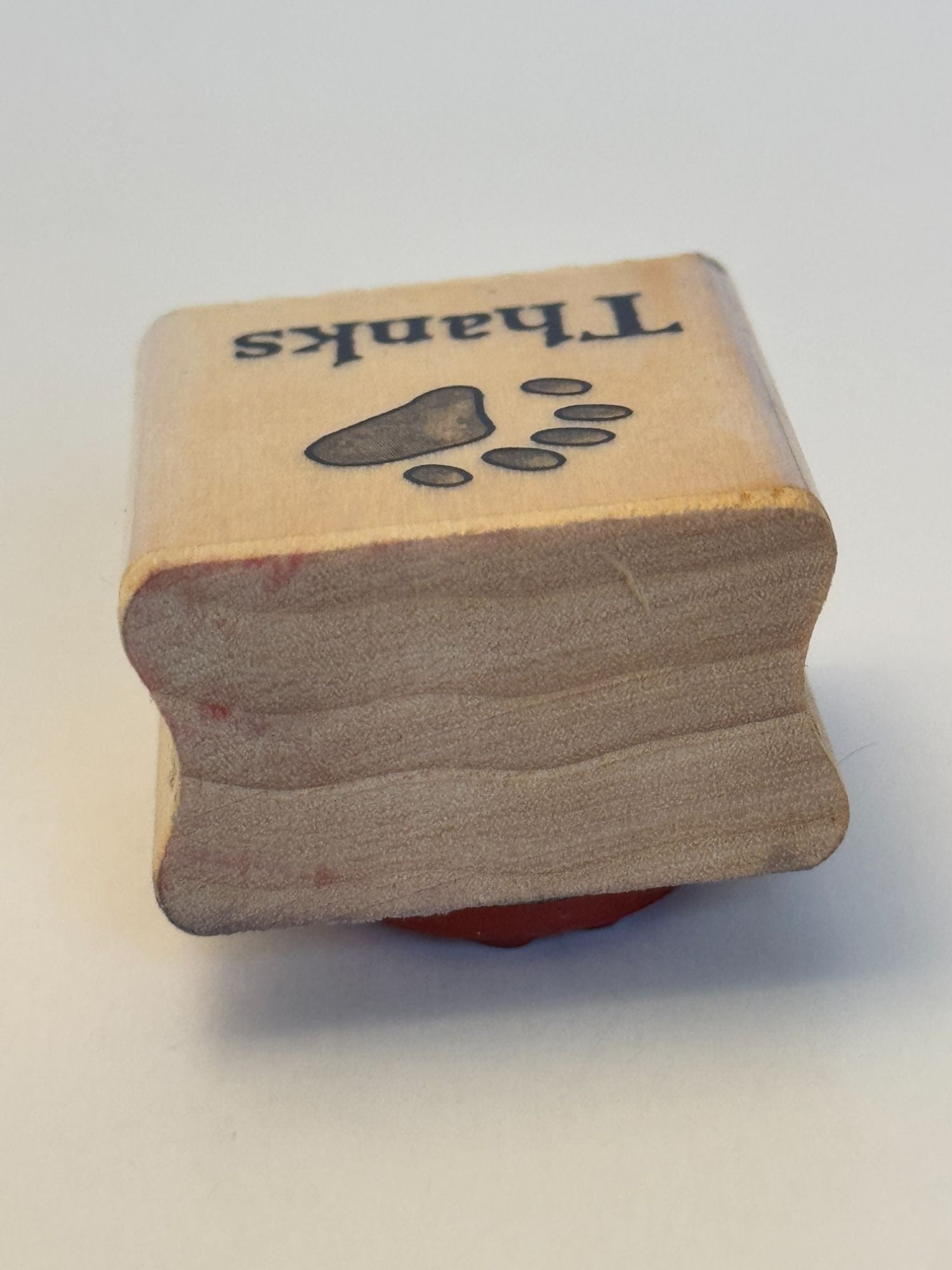 This rubber stamp features a paw print and "Thanks" design, ideal for crafting, scrapbooking, or personalized stationery. High-quality and durable.