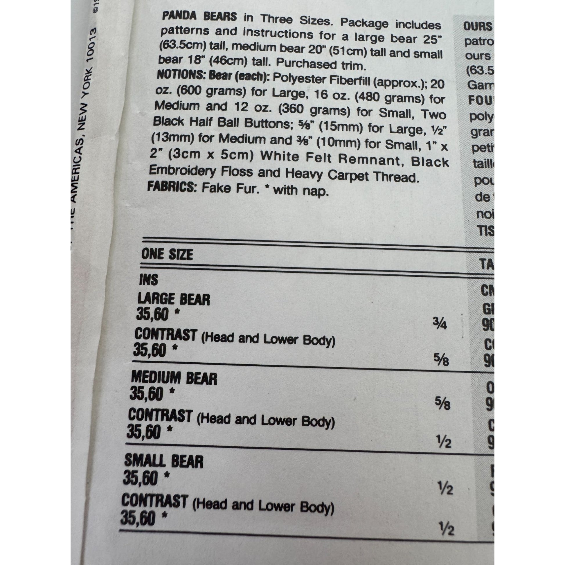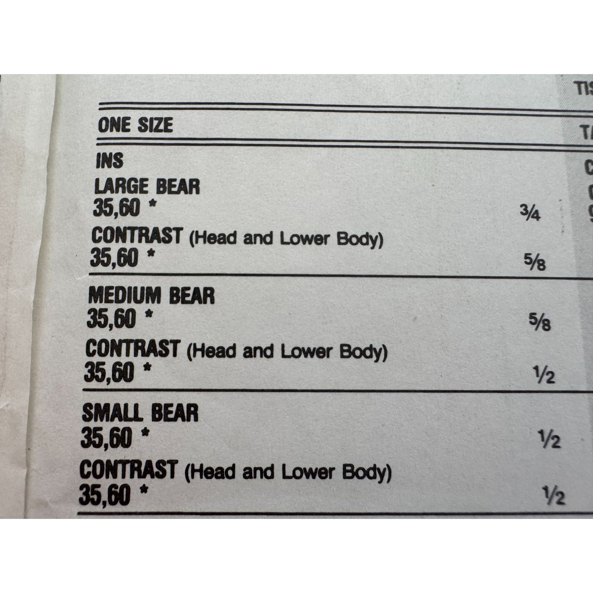 • Includes patterns for large (25 inch), medium (20 inch), and small (18 inch) bears