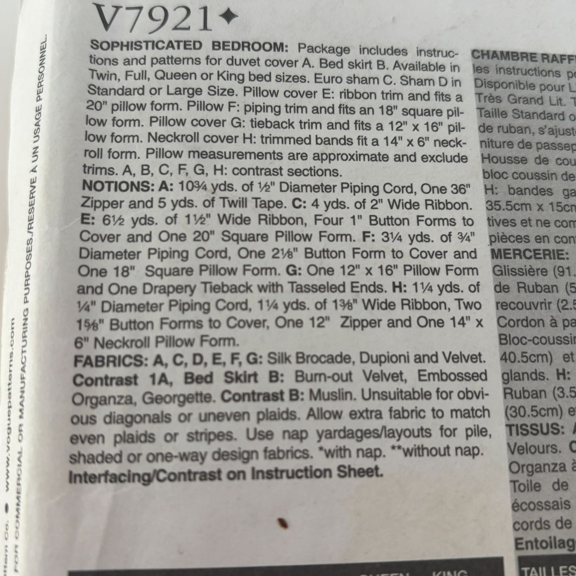 Vogue Decor Sewing Pattern V7921: Sophisticated Bedroom