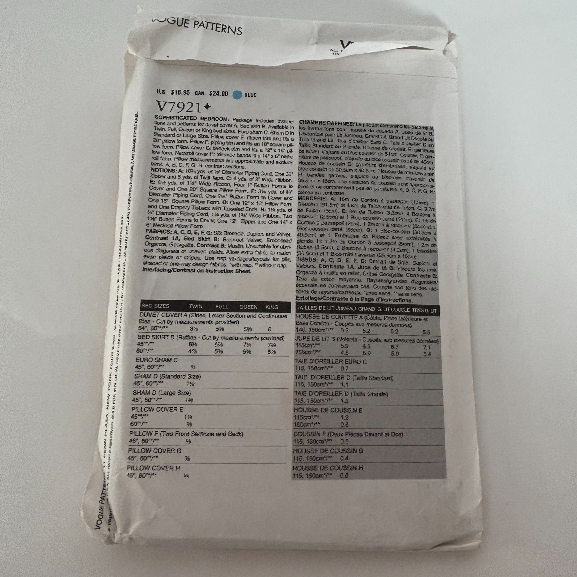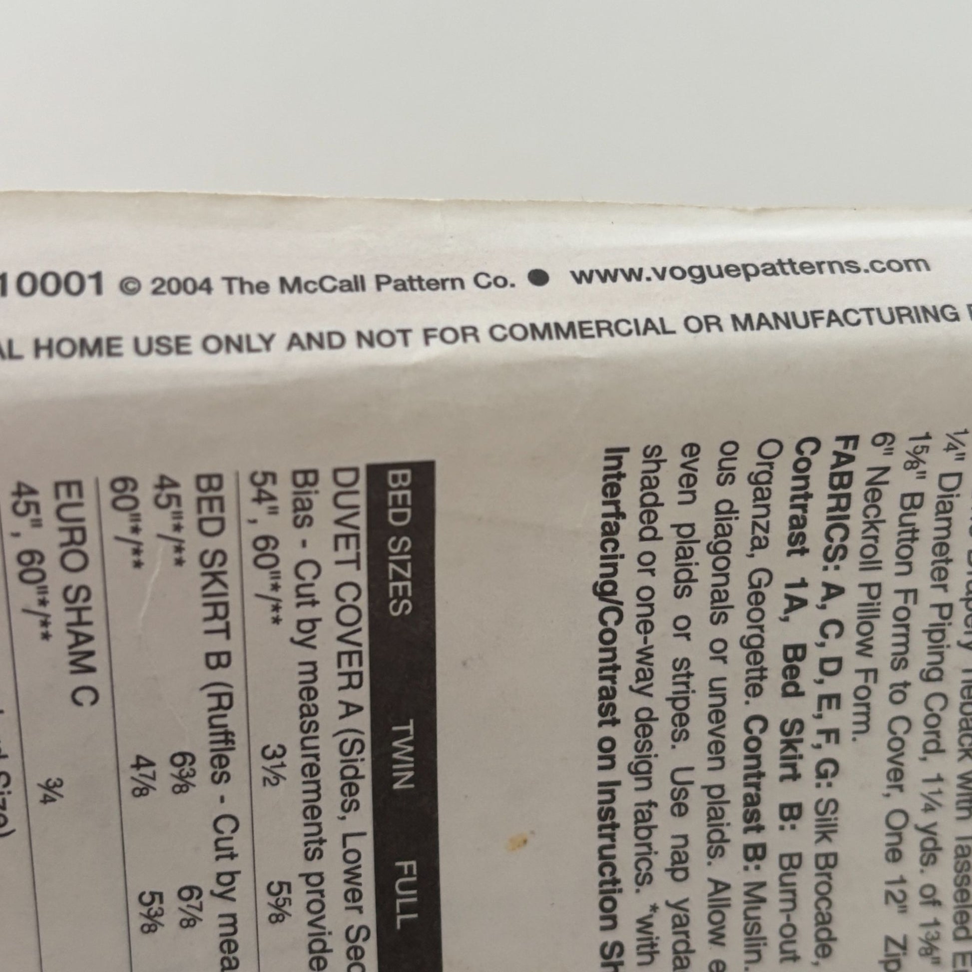 Vogue Decor Sewing Pattern V7921 Bedroom Duvet Cover Bed Skirt Sham Pillow Cover