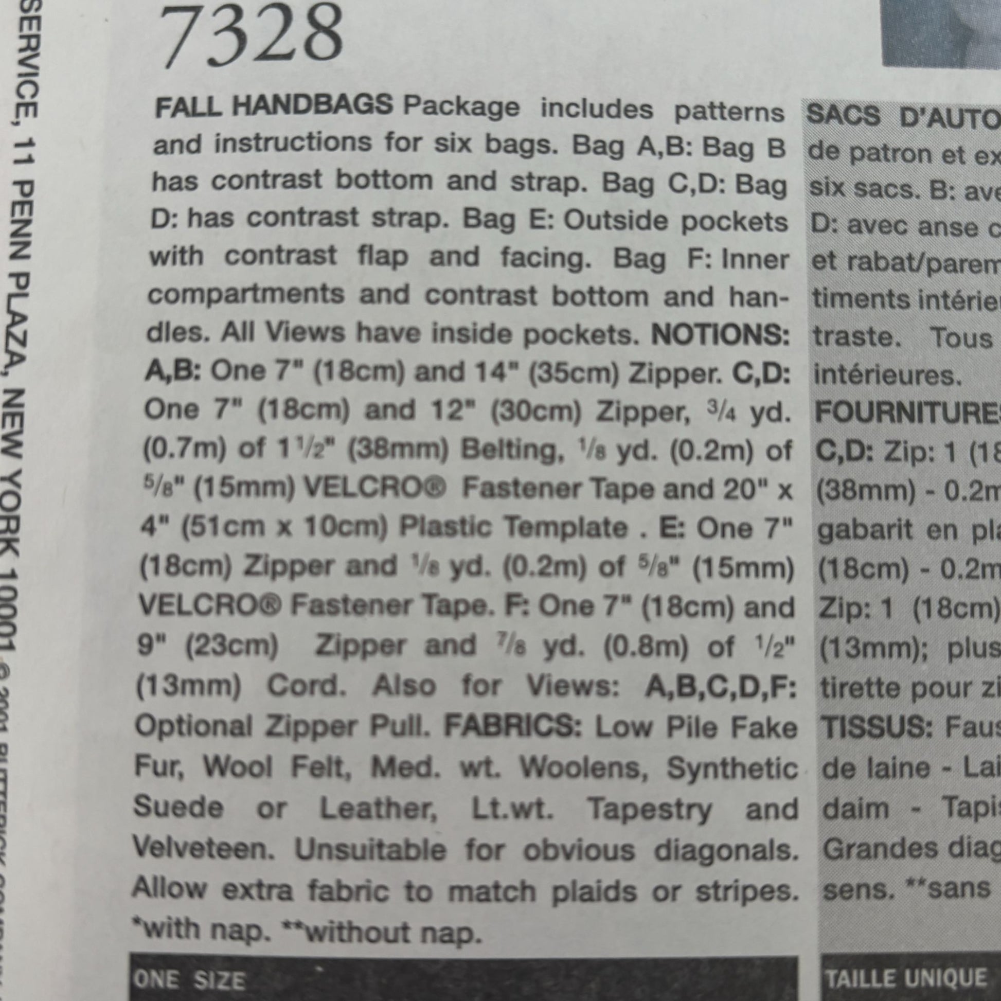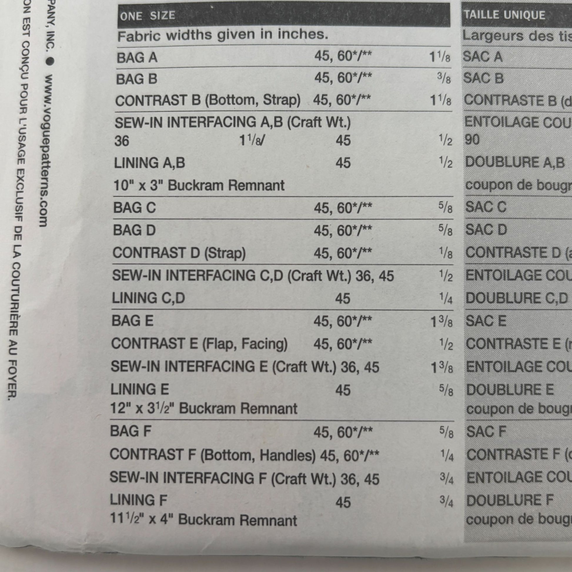 Vogue Accessories Sewing Pattern 7328: Fall Handbags