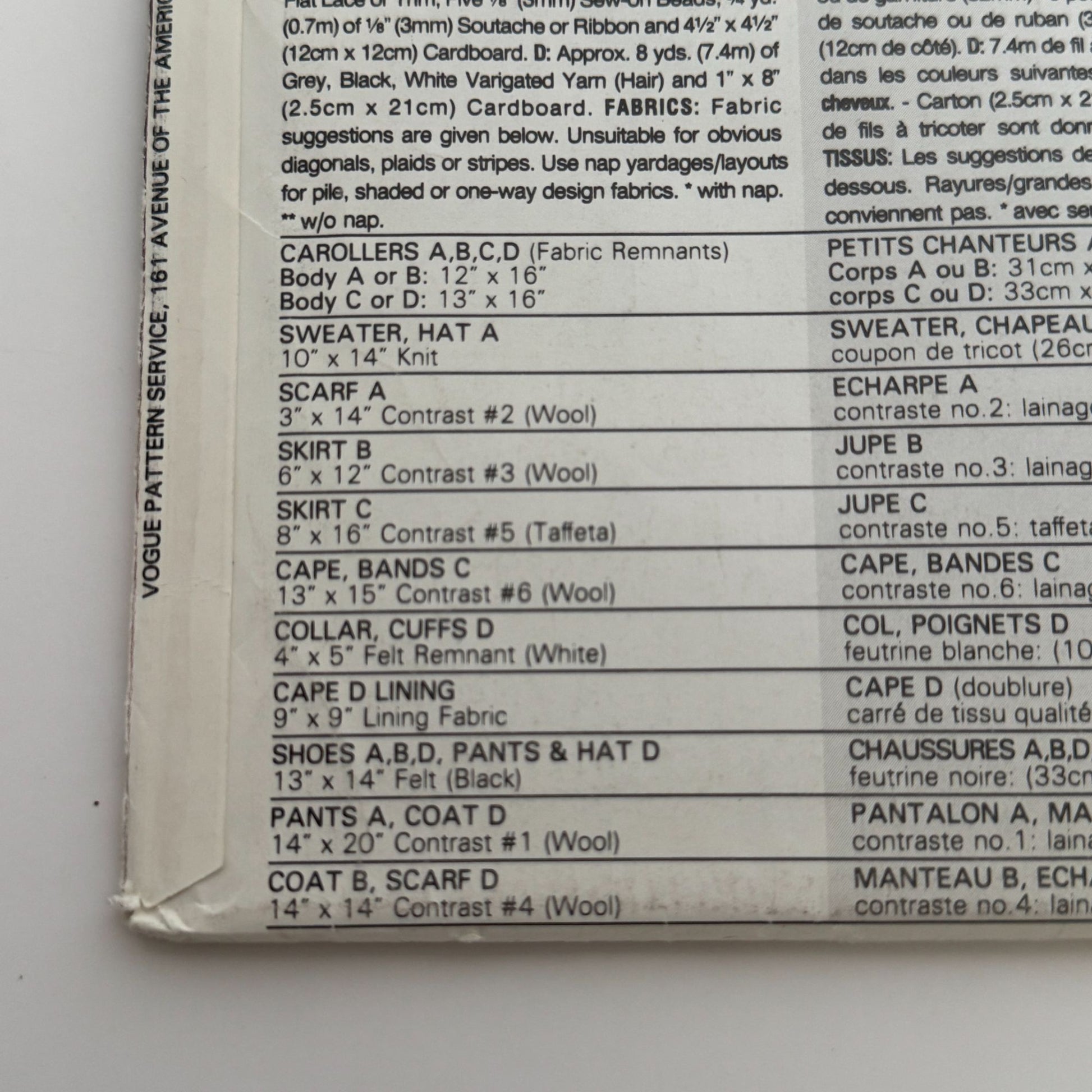 Vogue Sewing Pattern 7878: Christmas Carolers
