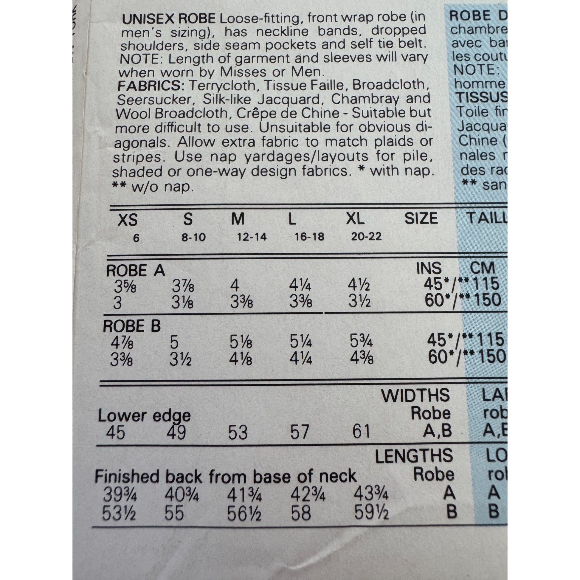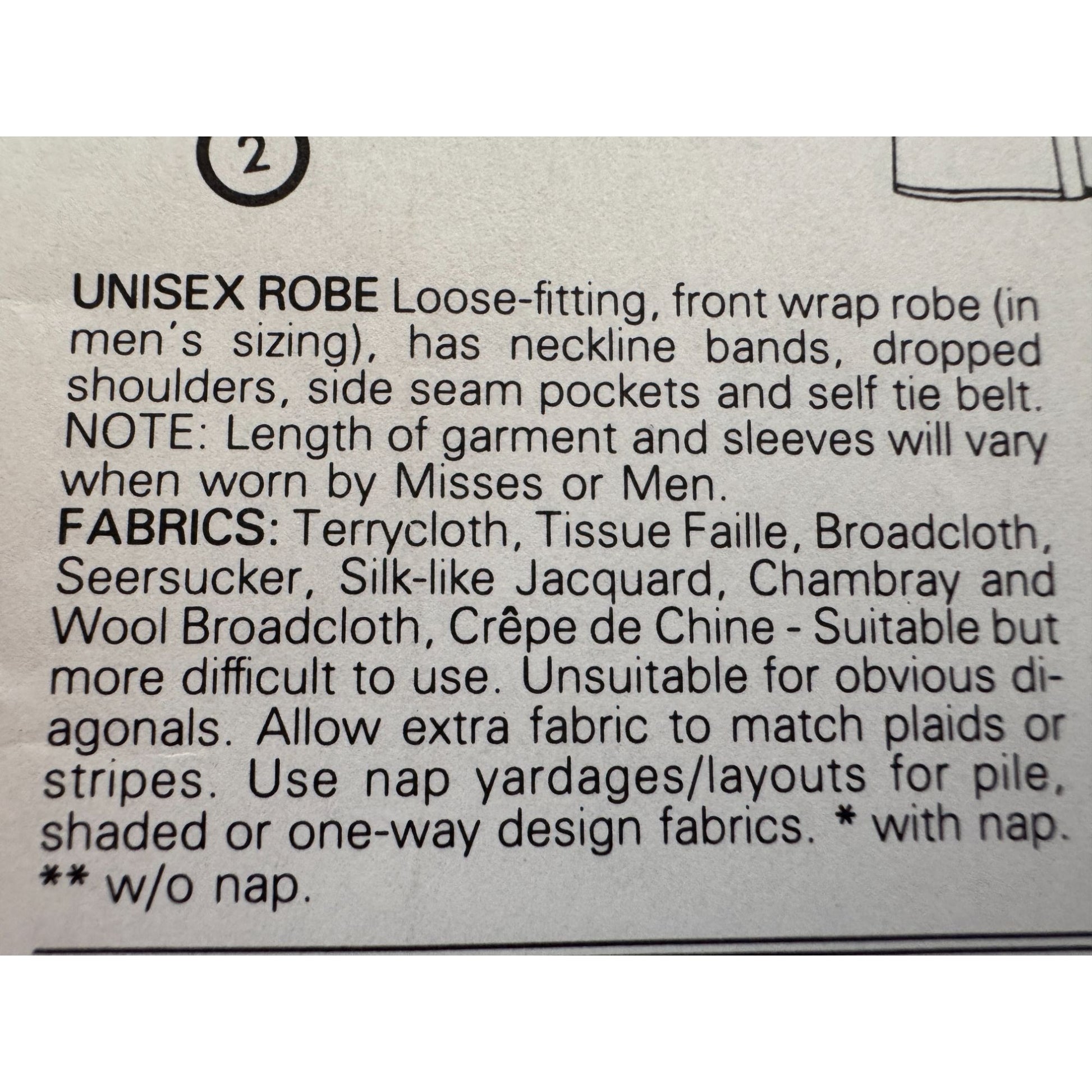Vogue Sewing Pattern 8155 Front Wrap Bath Robe Bathrobe Unisex XL 1980s Uncut