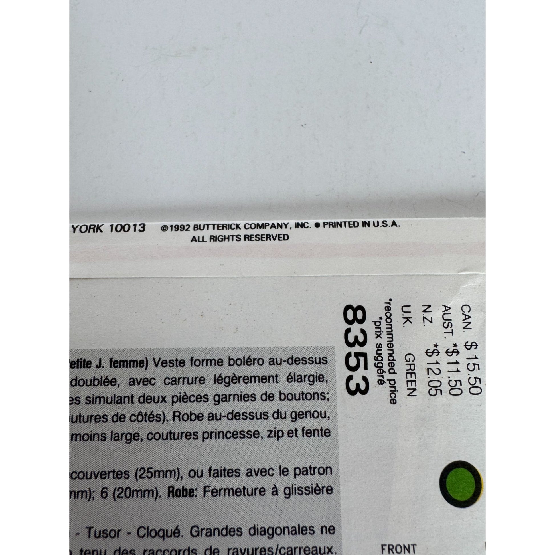 Vogue Sewing Pattern 8353: Misses' Jacket and Dress