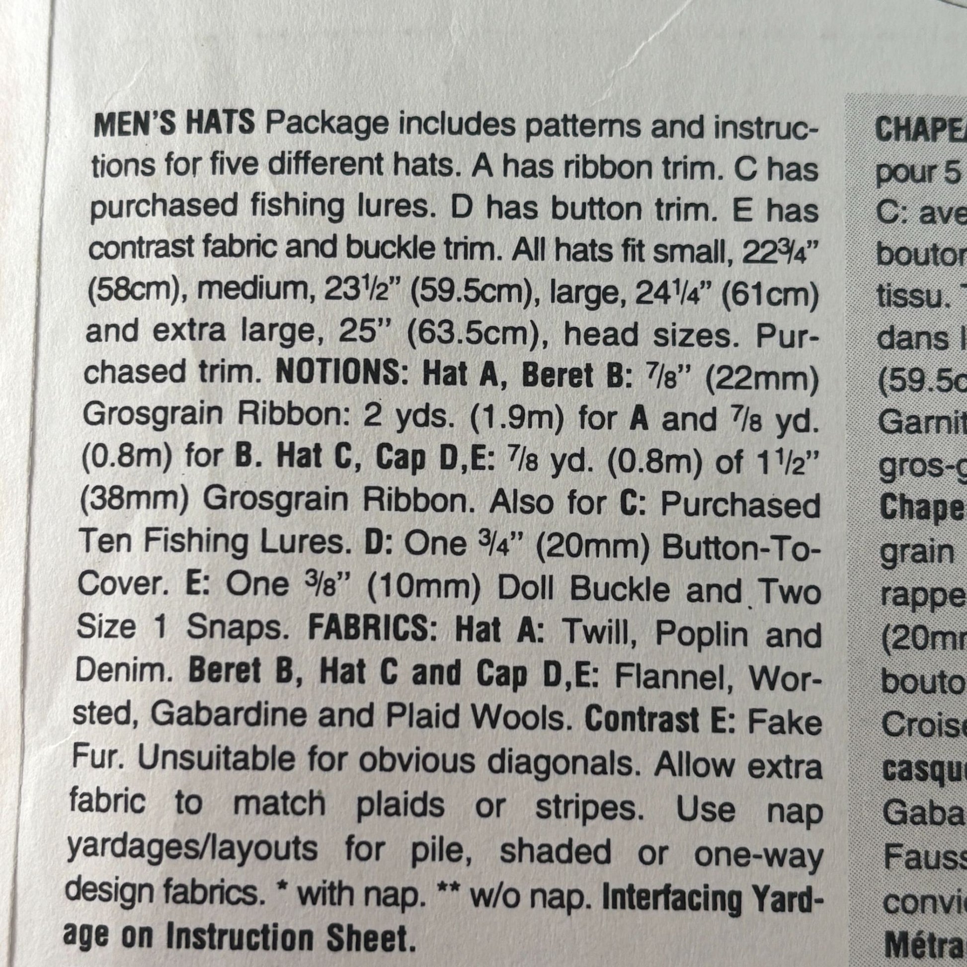 Vogue Accessories Sewing Pattern: Men's Hats