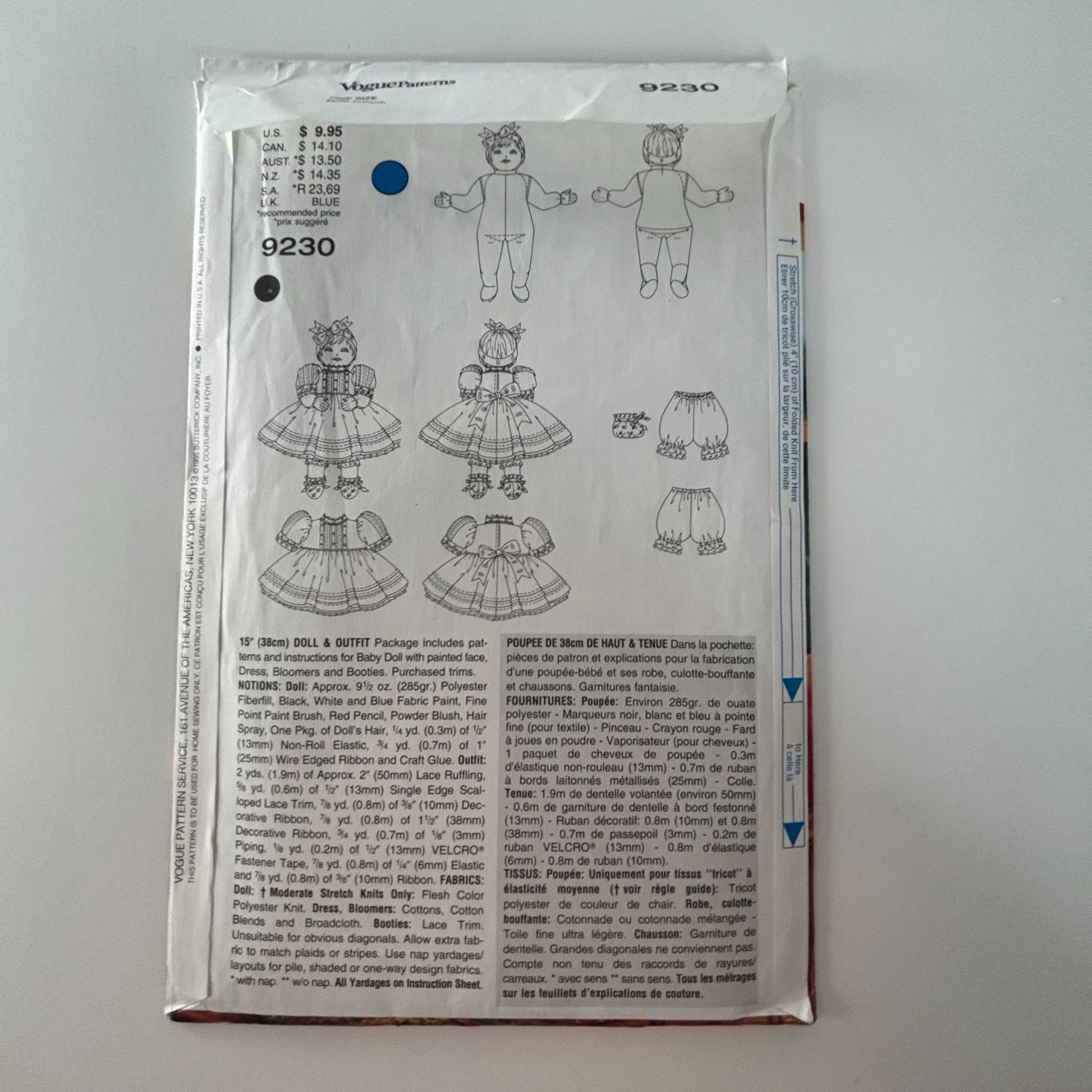 Vogue Sewing Pattern 9230: 15" Doll and Outfit